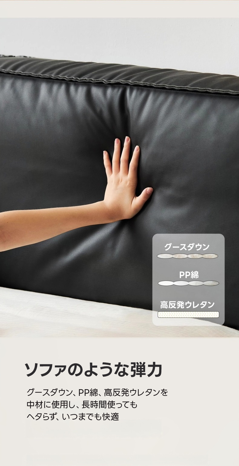 - 【高品質な素材と耐久性】合成皮革を使用し、耐久性と通気性に優れています。お手入れも簡単で、長期間にわたって美しい状態を保ちます。フレームはパイン材と合板を使用し、頑丈な構造を実現しました。