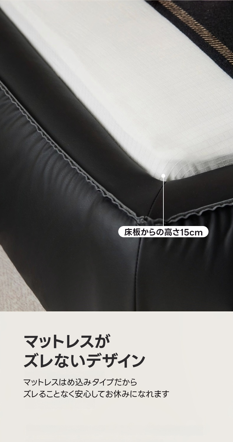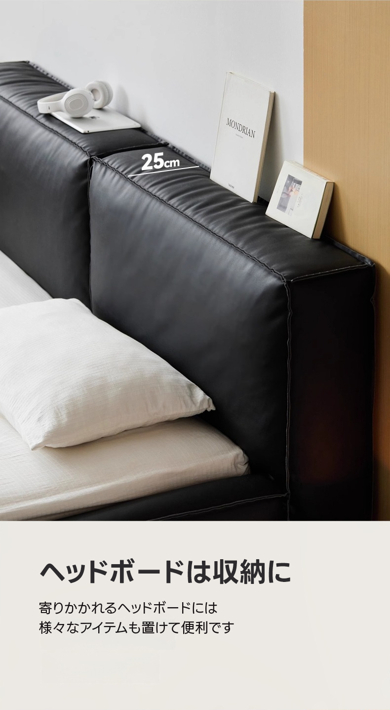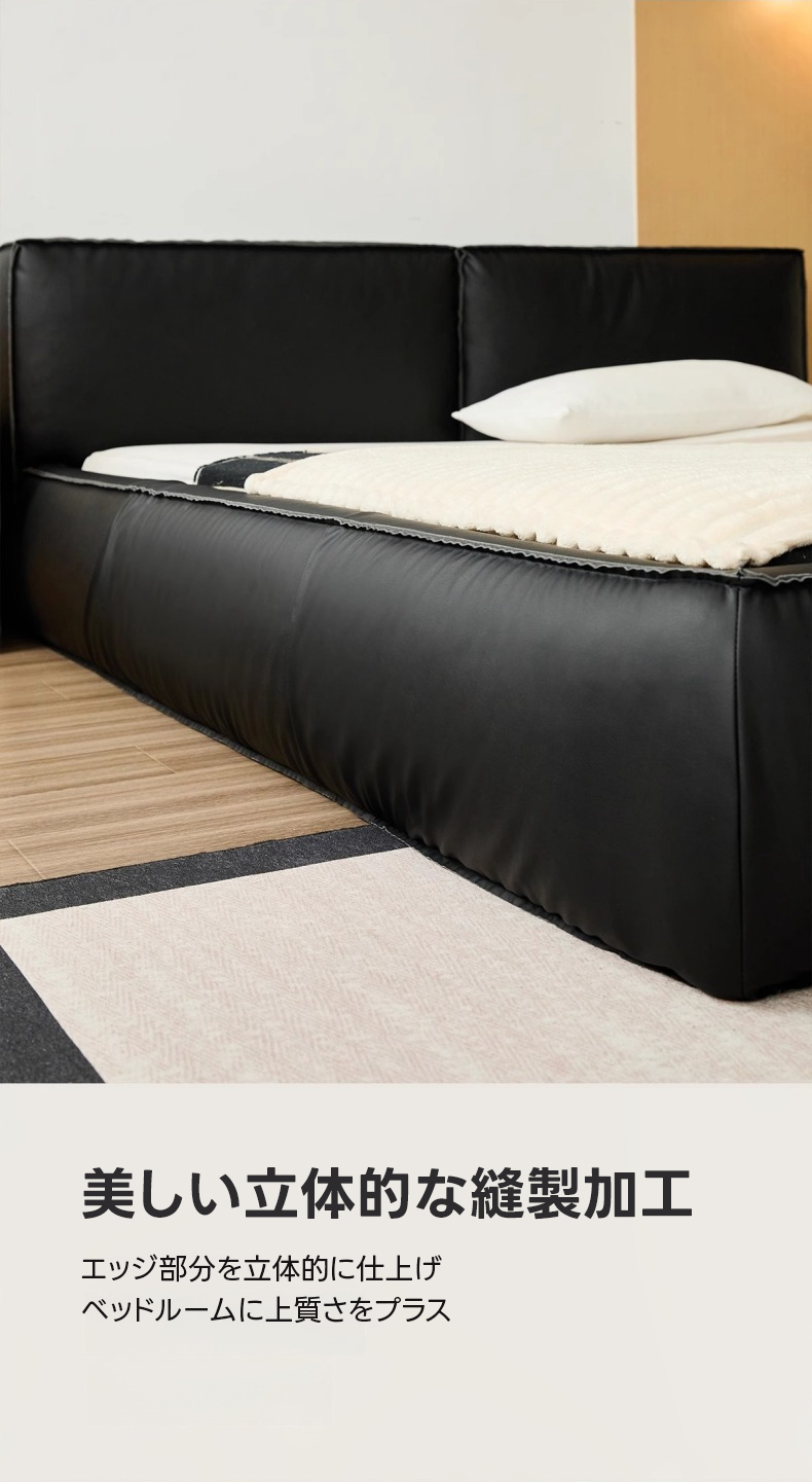 - 【快適な使用感と安全性】クッション性に優れた素材を採用し、ソファのような弾力性で快適な寝心地を提供します。ヘッドボードは収納スペースとしても利用可能で、ベッドフレームはクッション材で覆われているため、安全に使用できます。