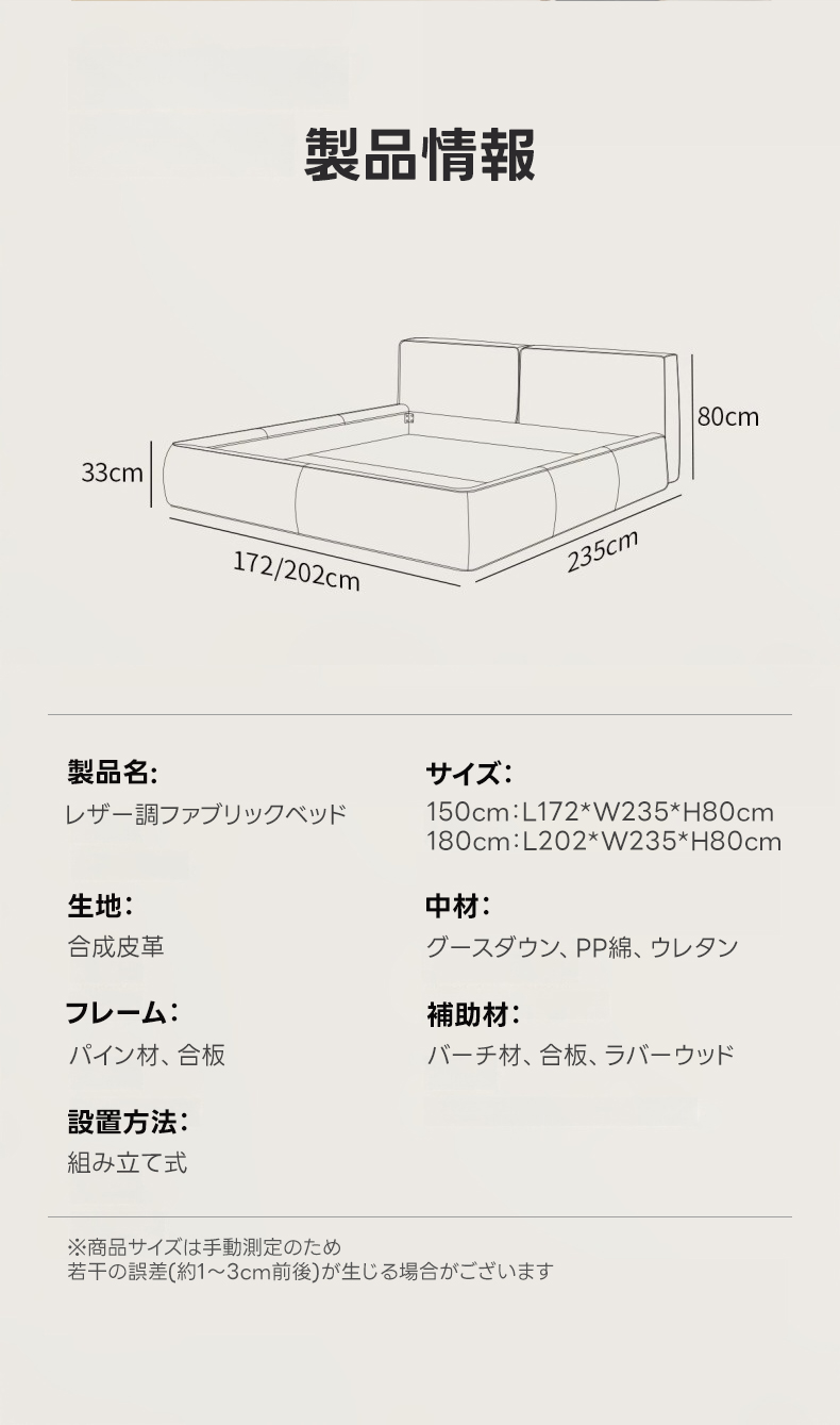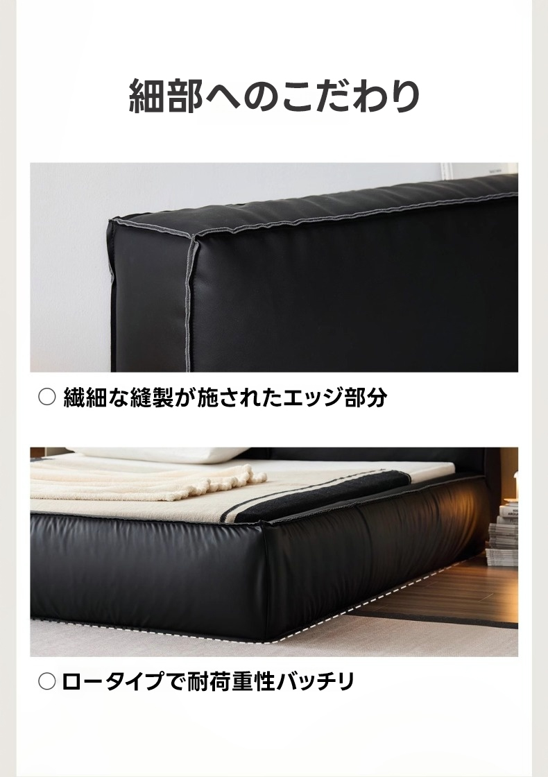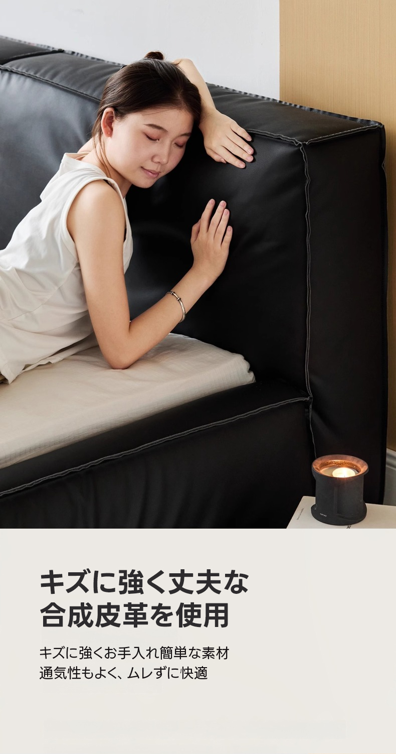- 【快適な使用感と安全性】クッション性に優れた素材を採用し、ソファのような弾力性で快適な寝心地を提供します。ヘッドボードは収納スペースとしても利用可能で、ベッドフレームはクッション材で覆われているため、安全に使用できます。