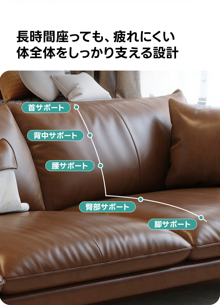 - 【快適な座り心地とサポート力】クラシックレザーワイドリビングソファは、高密度ウレタンフォームを使用し、体圧を素早く吸収します。長時間座ってもへたりにくく、快適な弾力を持続します。首、背中、腰、臀部、脚をしっかりサポートする設計で、体全体を優しく包み込みます。