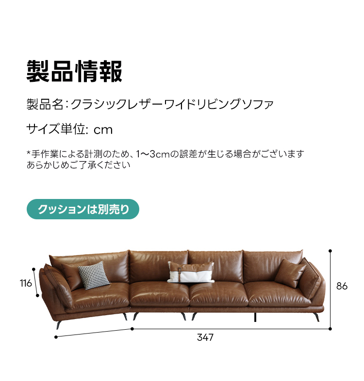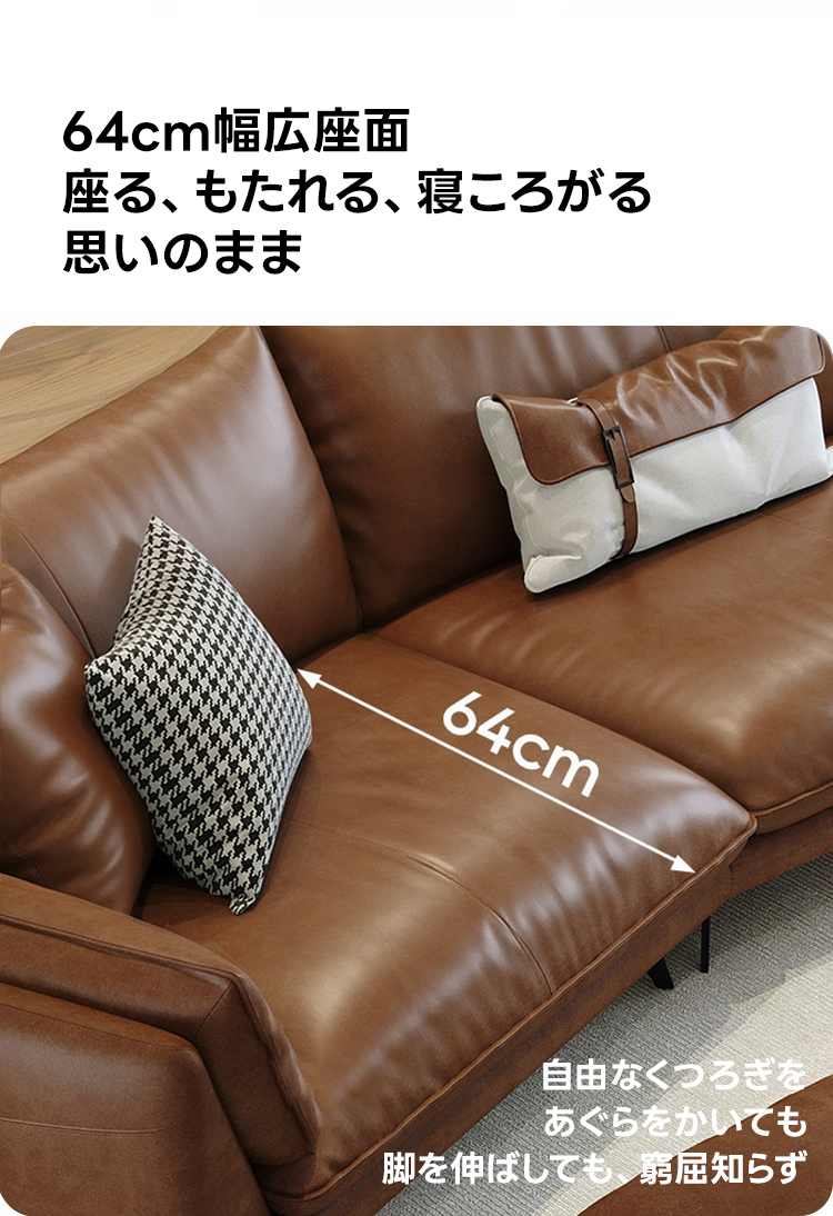 - 【安心のアフターサービス】このソファは、耐久性に優れた厚み1.8mmのレザーを使用しており、長く愛用できます。購入後も安心してご使用いただけるよう、しっかりとしたサポート体制を整えています。