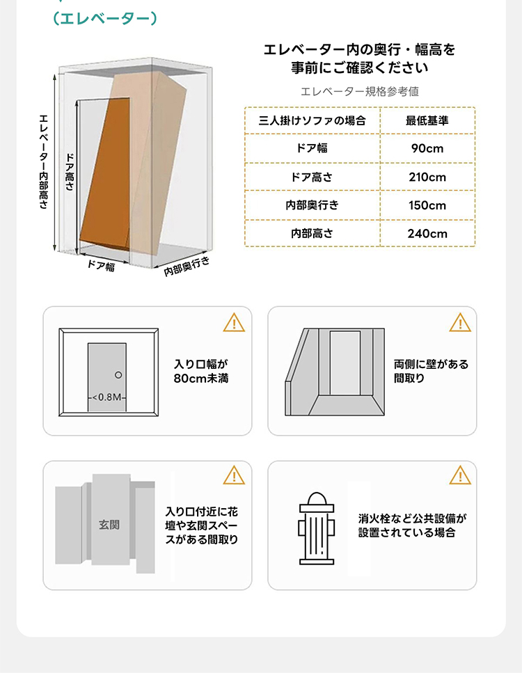 ※搬入不可等の理由による注文キャンセルは、ご返送にかかる費用をお客様にご請求いたします。ご注文前に大型家具の搬入方法をご確認ください。
