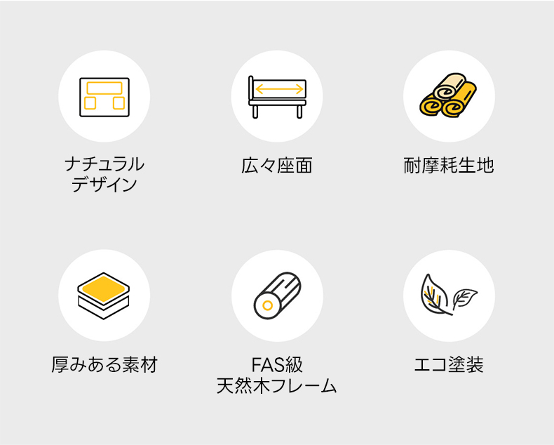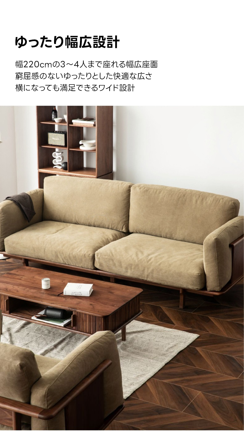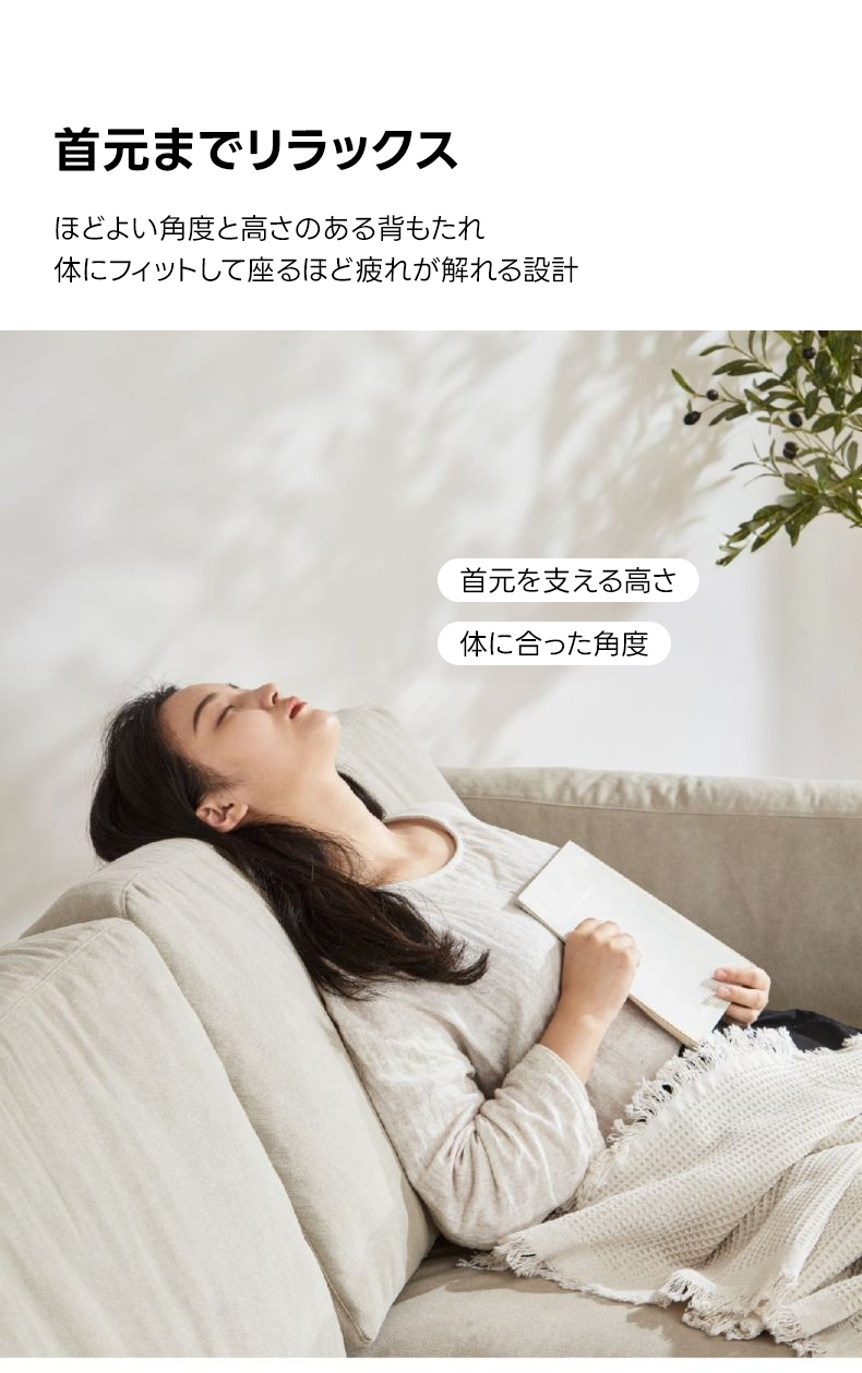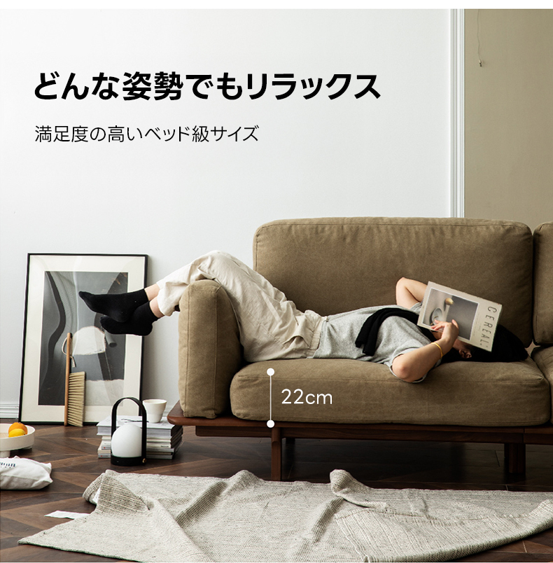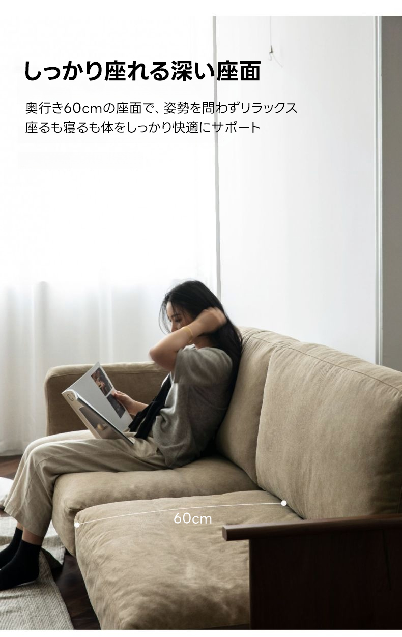 - 【ナチュラルでシンプルなデザイン】:どんなインテリアにも調和しやすいナチュラルでシンプルなデザインは、リビングルームをスタイリッシュに演出します。カップルやファミリーに最適な大型ソファで、ゆったりとした時間をお過ごしいただけます。