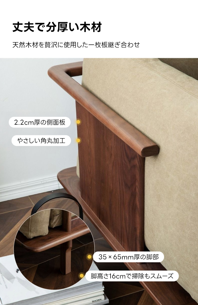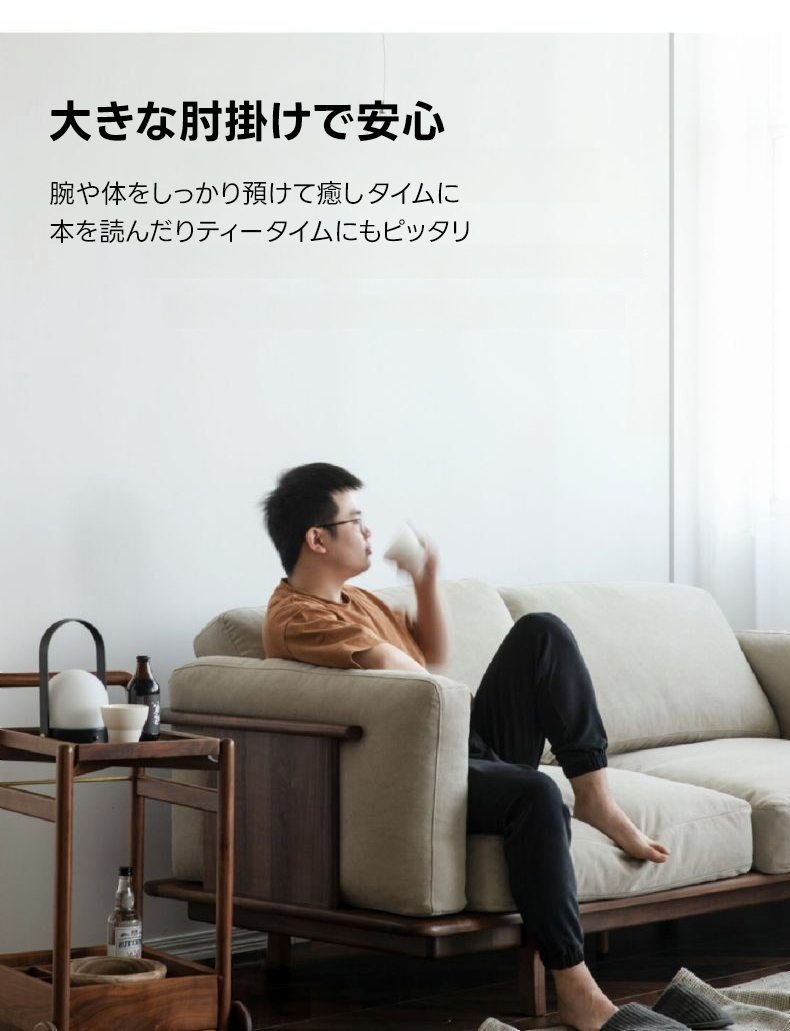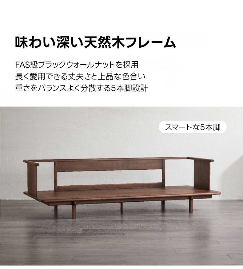 - 【高品質の素材と快適な座り心地】:ブラックウォールナット材を使用したフレームと高品質なダウンと高反発ウレタンを使用したクッションが、耐久性と快適な座り心地を提供します。長時間座っても疲れにくい設計で、日常のリラックスタイムをサポートします。