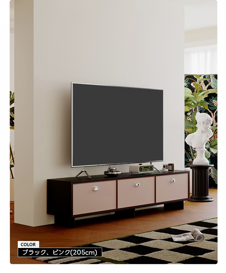 - 【ヴィンテージデザインで魅力的な空間を演出】:クラシカルなラインとビビッドな差し色が特徴のヴィンテージテレビボードは、リビングや寝室にスタイリッシュな雰囲気を加えます。どんなインテリアにもマッチし、空間を魅力的に演出します。