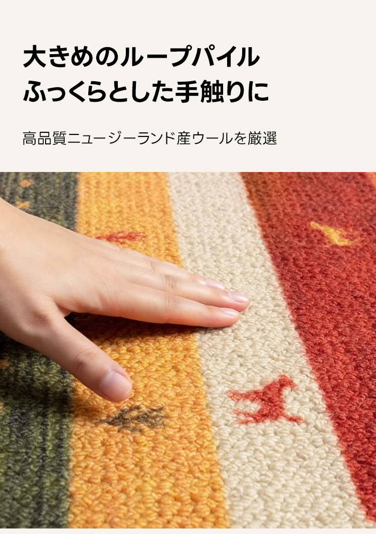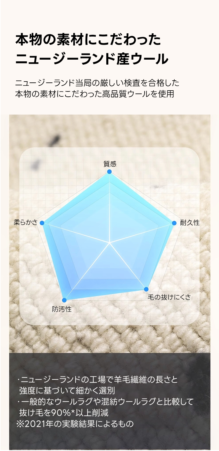 - 【高級ウール素材のラグ】このラグはニュージーランド産の100%純正ウールを使用しており、柔らかく滑らかな手触りが特徴です。防汚効果があり、汚れにくく、お手入れが簡単です。耐久性にも優れ、長期間お使いいただけます。