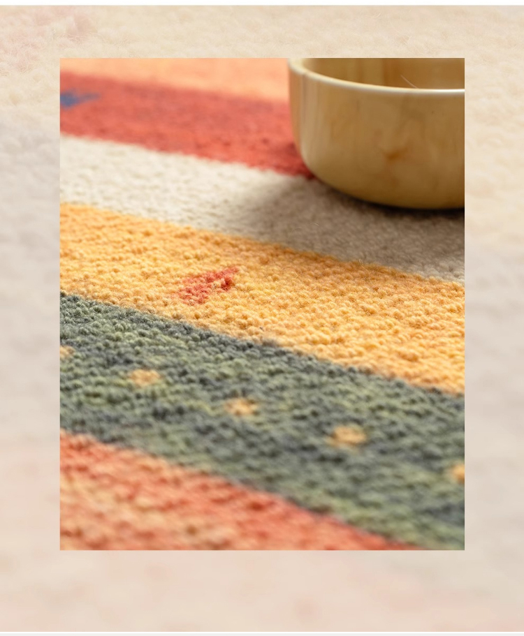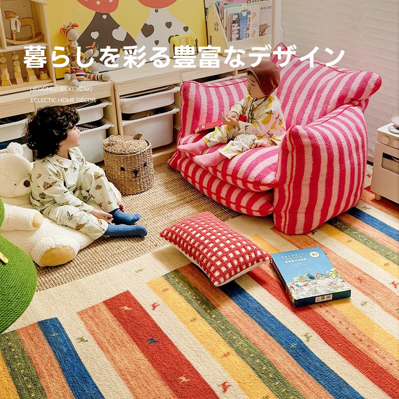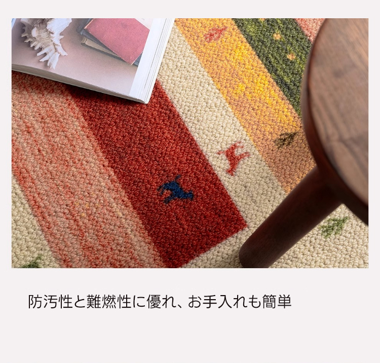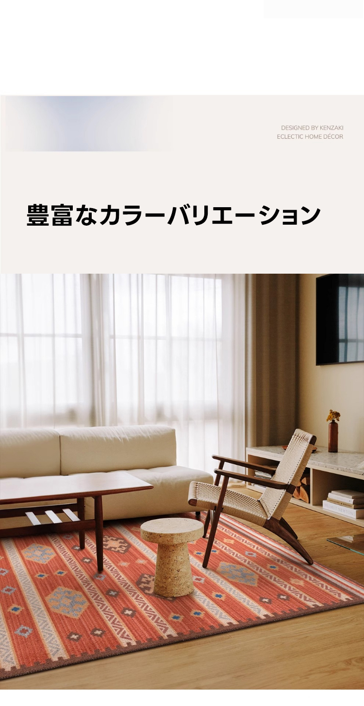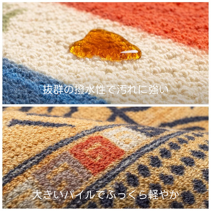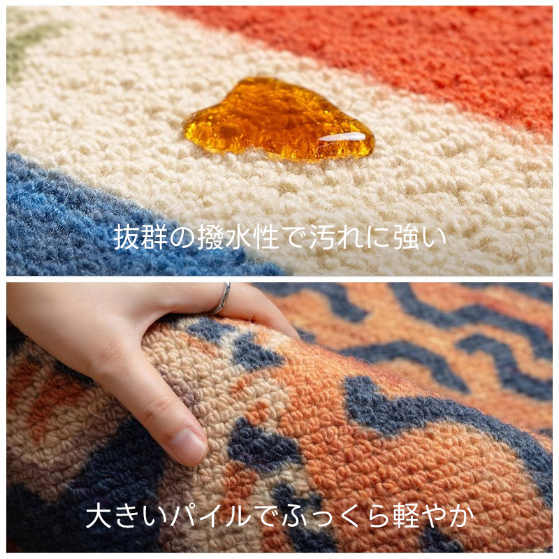 - 【デザインと品質】カラフルな色合いとヴィンテージ感のあるデザインが特徴で、インテリアに華やかさをプラスします。北欧風のスタイルにもぴったりで、部屋を明るく彩ります。防汚性、難燃性、吸音性に優れた品質です。