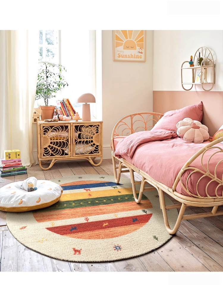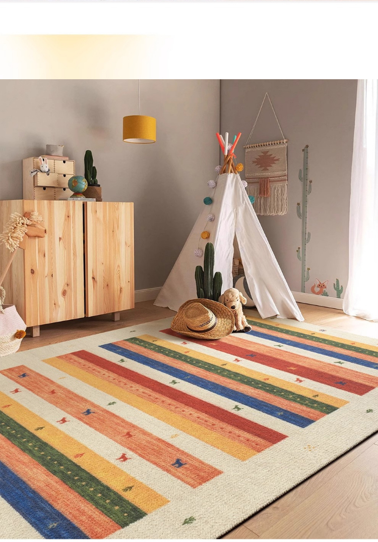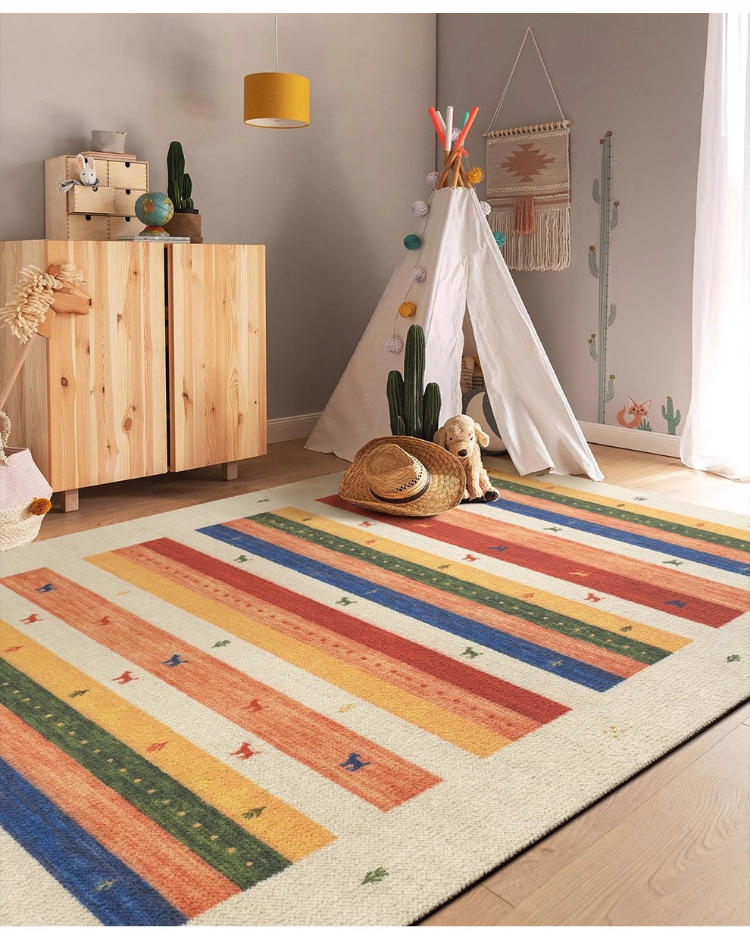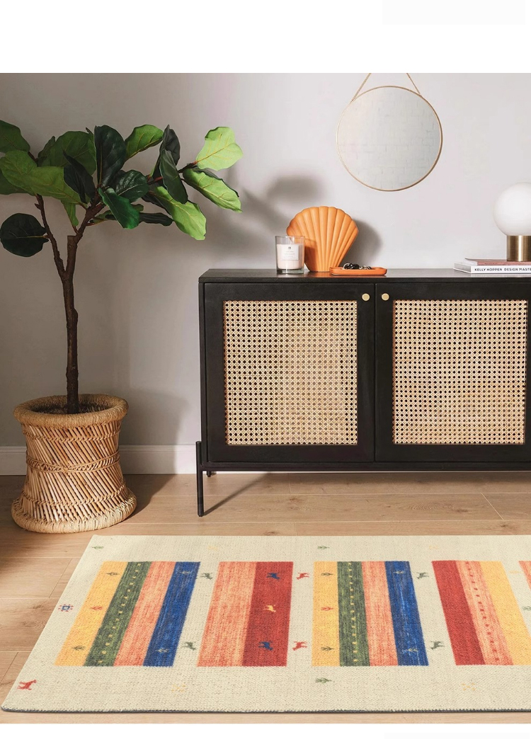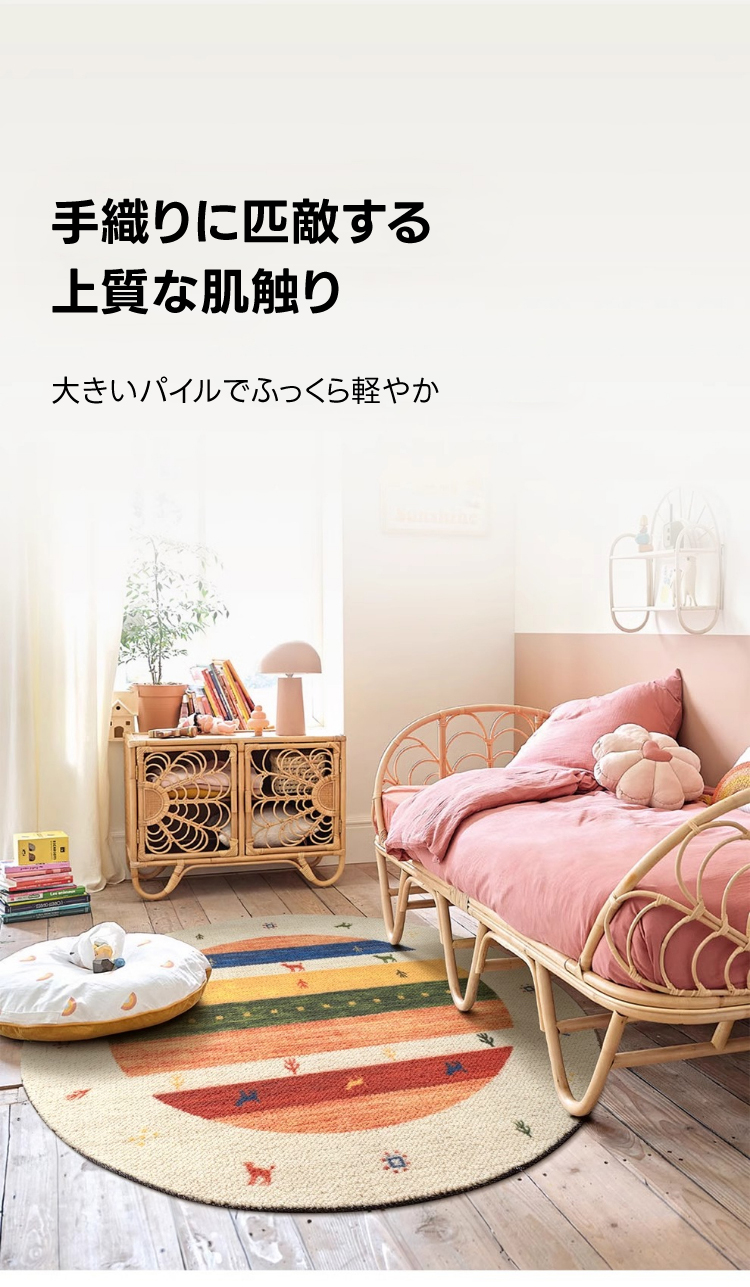 - 【デザインと品質】カラフルな色合いとヴィンテージ感のあるデザインが特徴で、インテリアに華やかさをプラスします。北欧風のスタイルにもぴったりで、部屋を明るく彩ります。防汚性、難燃性、吸音性に優れた品質です。