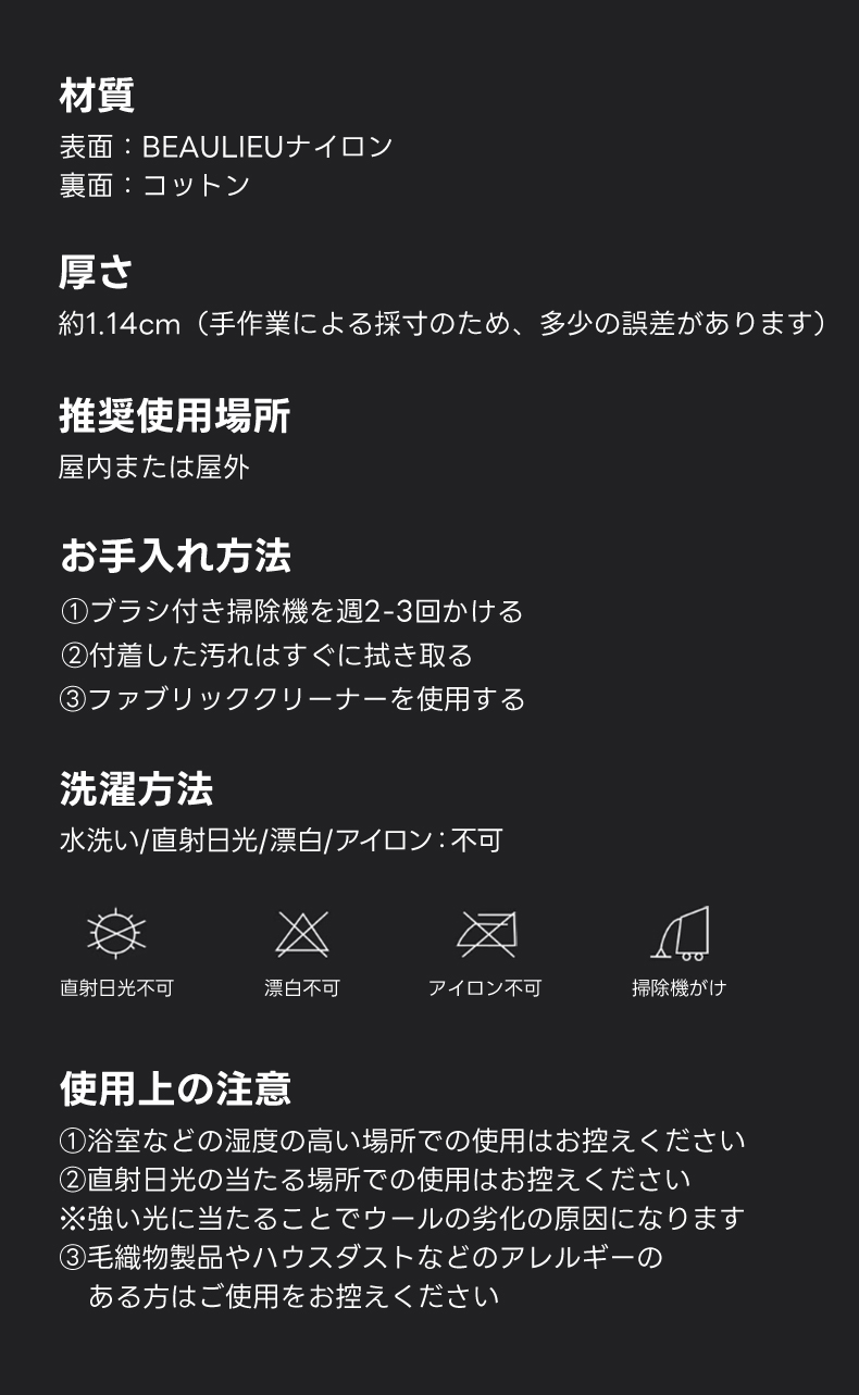 - 【快適な柔らかさと耐久性】:このラグは高品質なナイロン素材を使用しており、耐久性と柔らかさを兼ね備えています。しっかりとした踏み心地を提供し、長期間使用しても形状を保ちます。