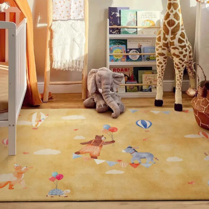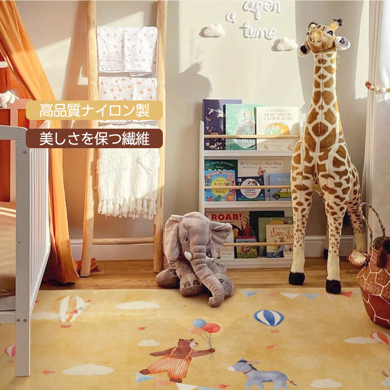 - 【高品質な素材とデザイン】表面はナイロン製で、裏面には通気性に優れたコットン素材を使用しています。かわいらしい動物や気球の柄が施されており、子どもたちの想像力を刺激します。