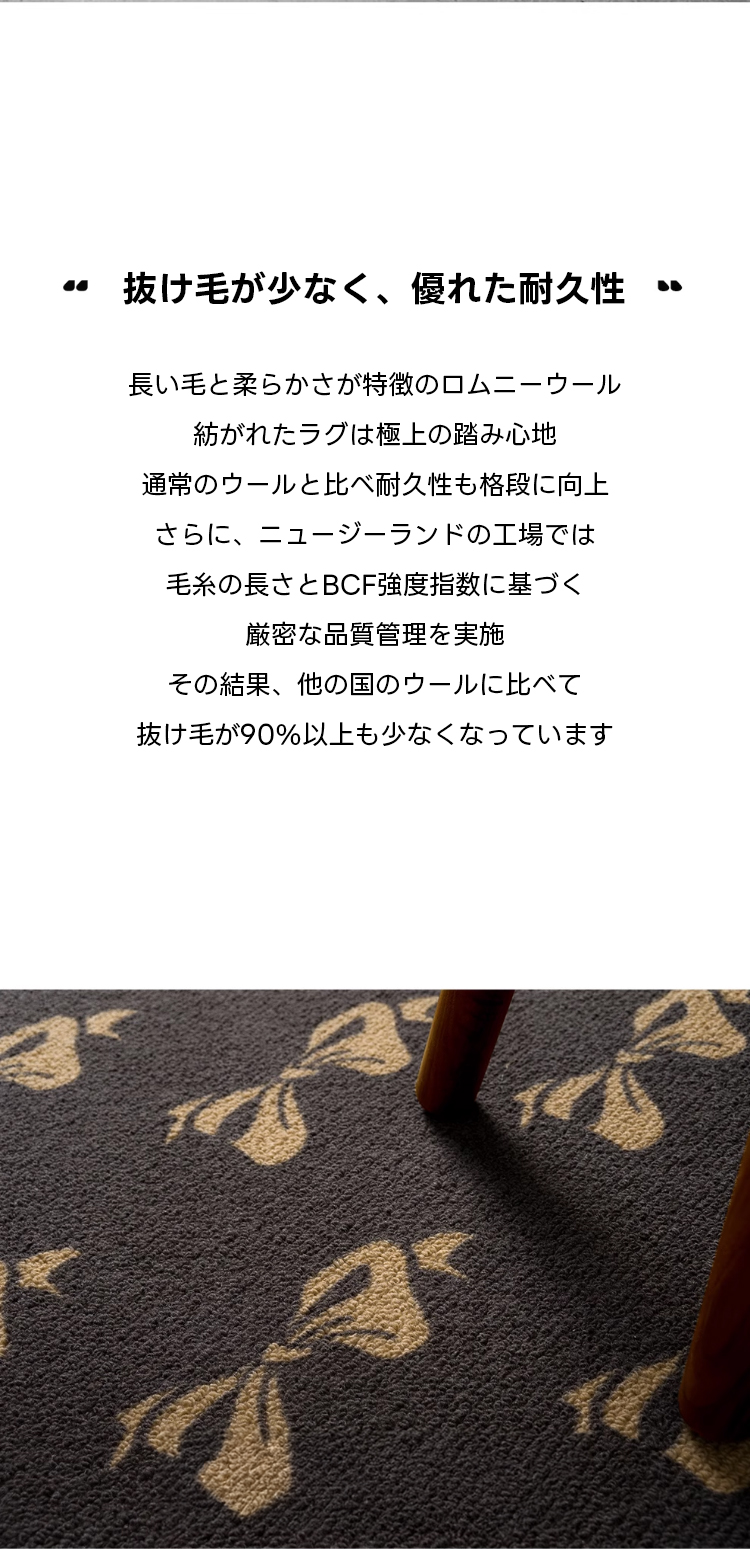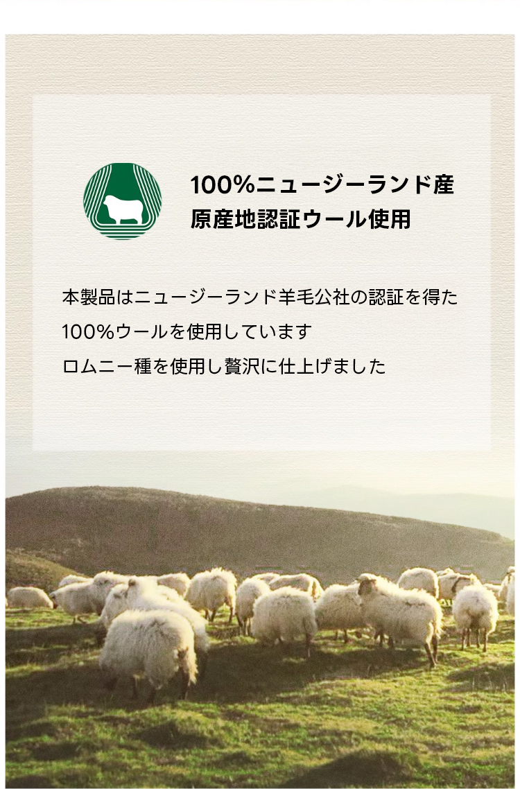 - 【贅沢な触り心地と耐久性】高品質なニュージーランド産ウールを100%使用し、贅沢な触り心地と優れた耐久性を実現。長い繊維を使用しており、抜け毛が少なく、長期間美しい状態を保ちます。