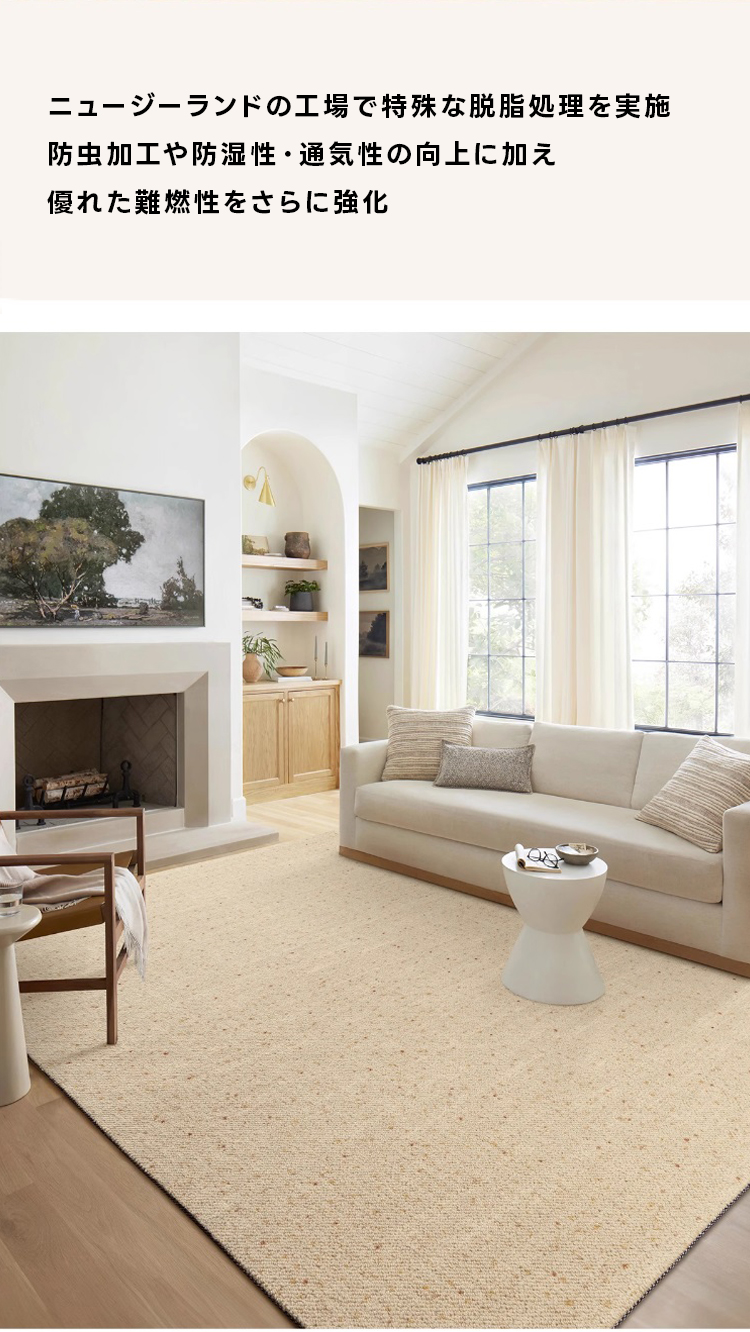 - 【高品質な素材とデザイン】:ニュージーランドの牧草地で育てられたウールを使用し、環境にも優しいラグです。北欧風のシンプルで洗練されたデザインが、部屋に上質な雰囲気をもたらします。