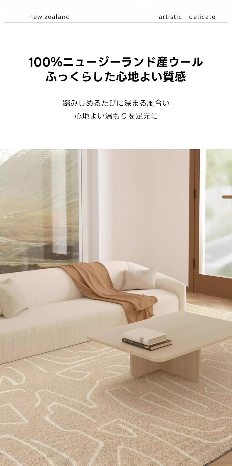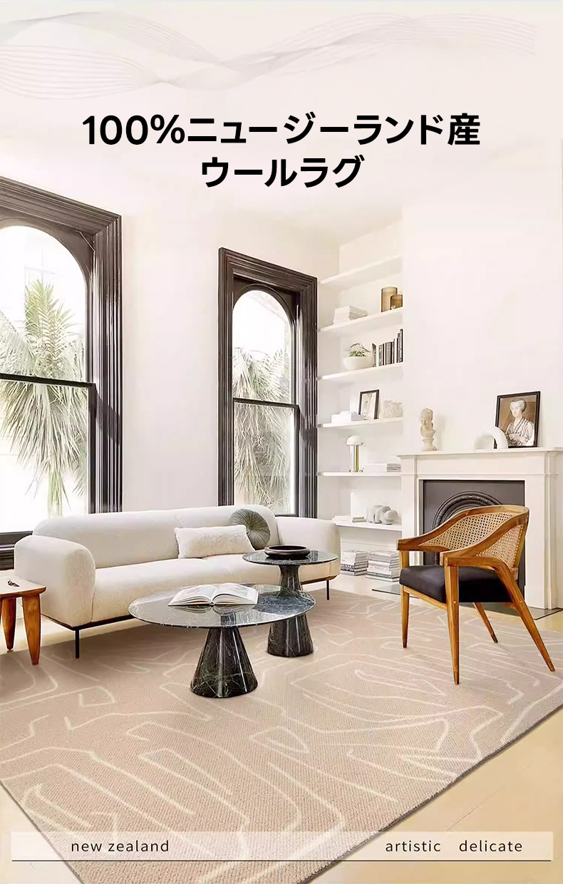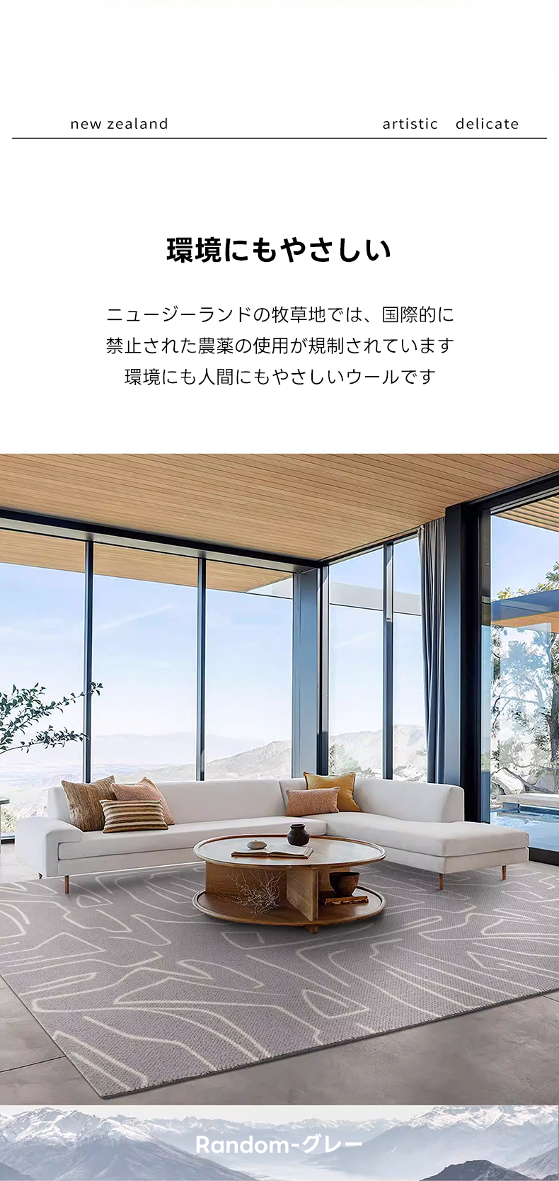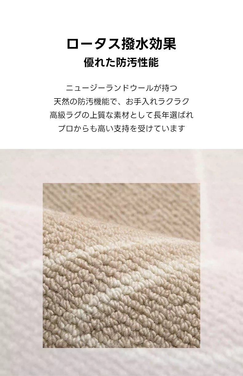 - 【高級ウール使用のラグ】:このラグは100%ニュージーランド産のウールを使用しており、希少なロムニー種のウールが贅沢な質感を提供します。高品質な素材が耐久性と柔らかさを兼ね備え、長く愛用していただけます。
