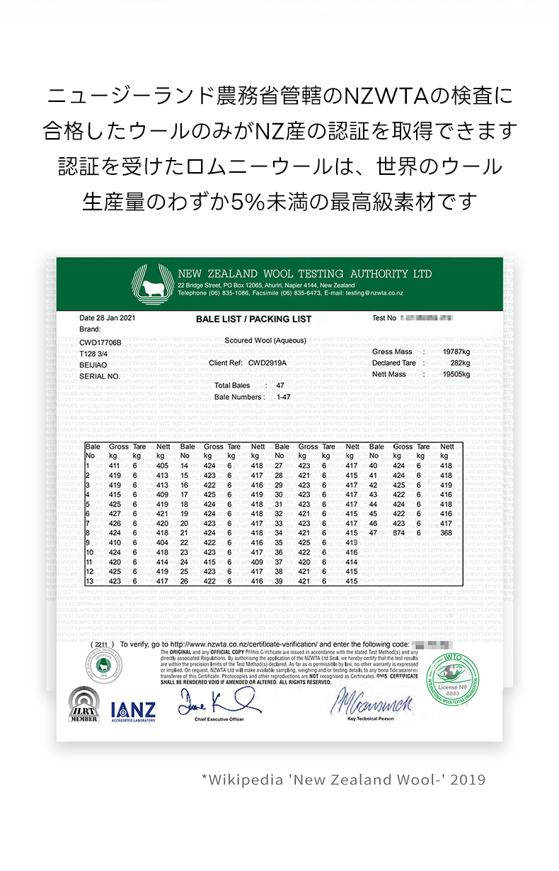 - 【環境に優しい高品質素材】ニュージーランドの羊毛公社の認証を受けたウールを使用し、環境にも人間にも優しい素材です。国際的に禁止された農薬の使用が規制されているため、安心してご使用いただけます。