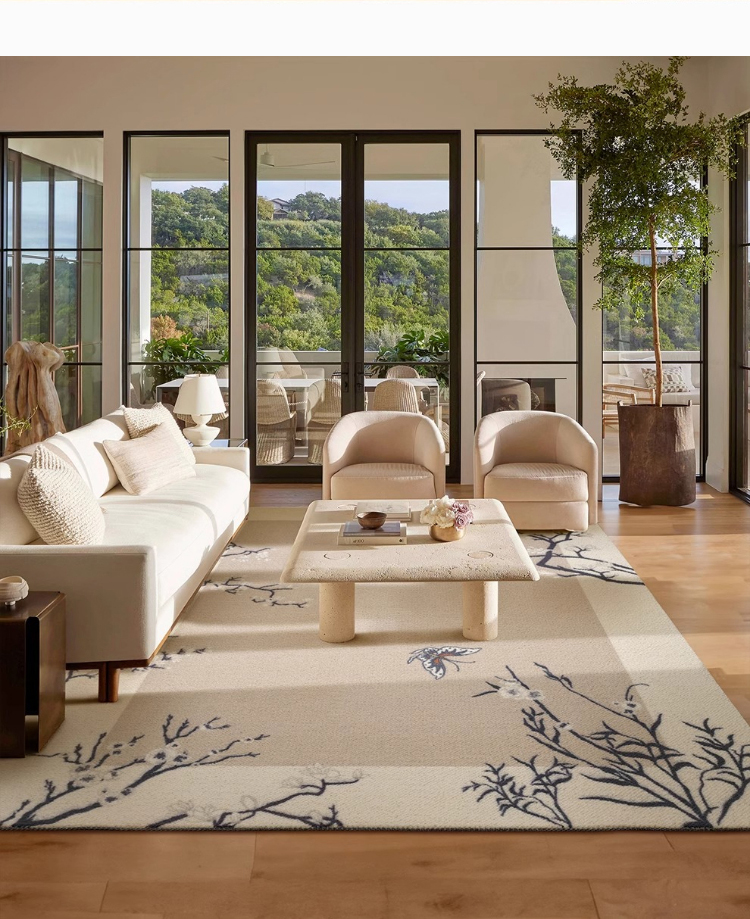 - 【優れた機能性】防汚、難燃、防音性能を備えており、快適な使用感を実現。裏地には通気性に優れたコットンを使用しており、床暖房のある部屋でも快適に使用できます。