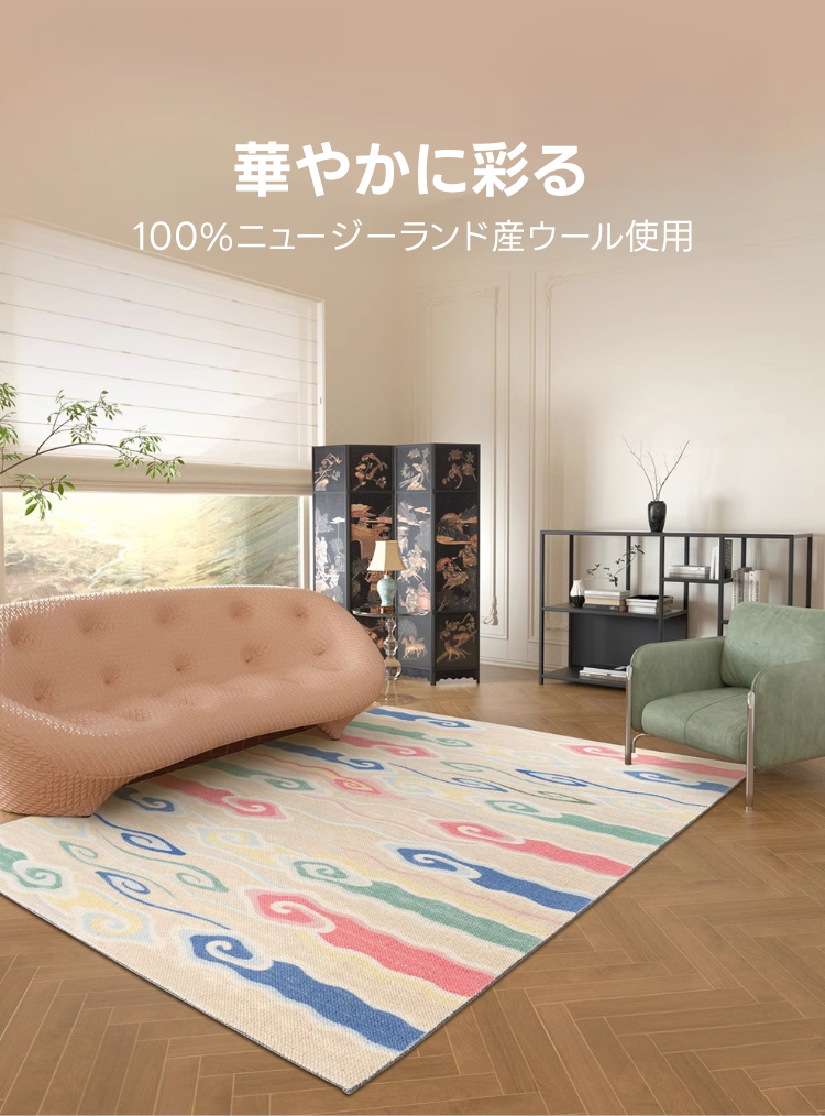- 【多様な適用シーン】:カラフルなデザインとベージュ基調の色合いは、リビングや寝室、書斎など様々な空間にマッチし、華やかさをプラスします。