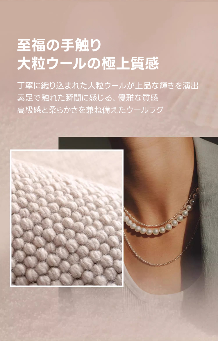 - 【高級ウール素材の贅沢な手触り】ニュージーランド産の高級ウールを使用し、柔らかく贅沢な手触りを提供します。大粒のパールのような織りが視覚的にも高級感を演出します。