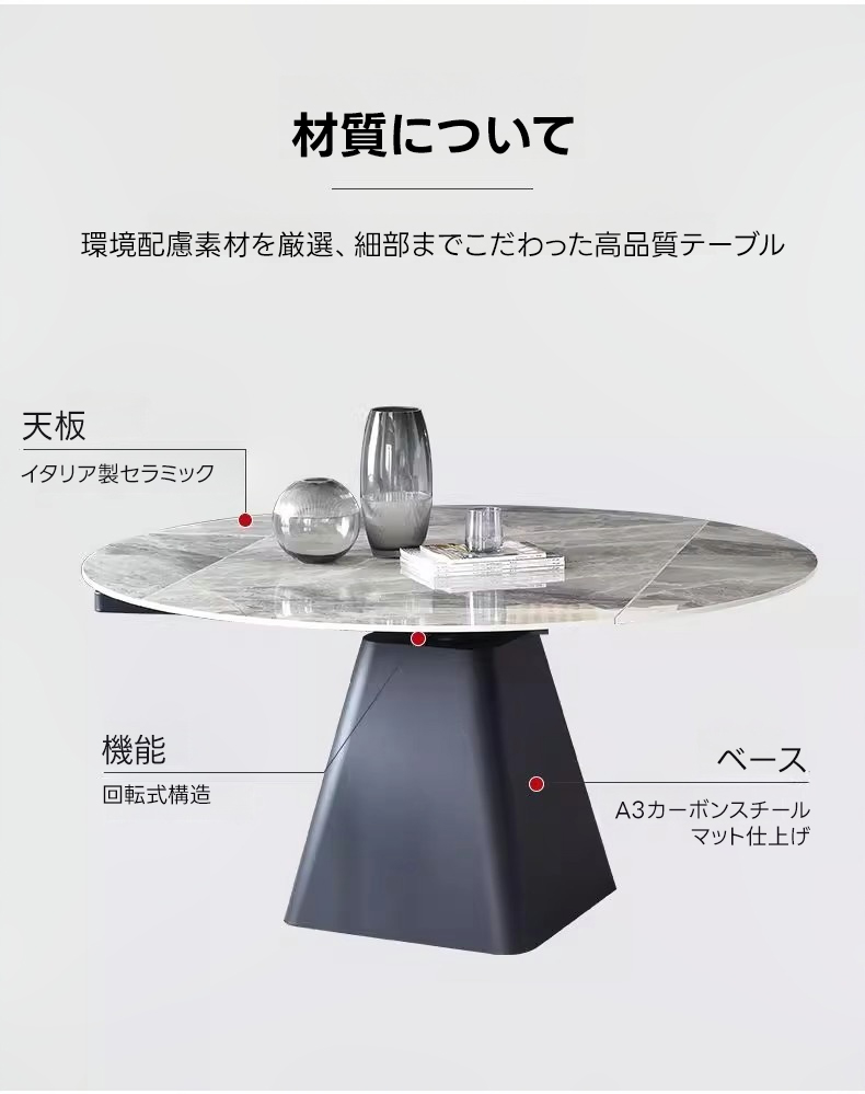 - 【高品質素材とデザイン】:イタリア製のセラミック天板は、天然石のような美しい模様と高い耐久性を持ち、傷や汚れに強いです。A3カーボンスチールのベースは、マット仕上げで高級感を演出します。