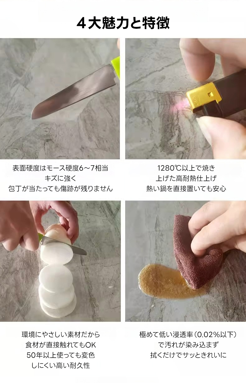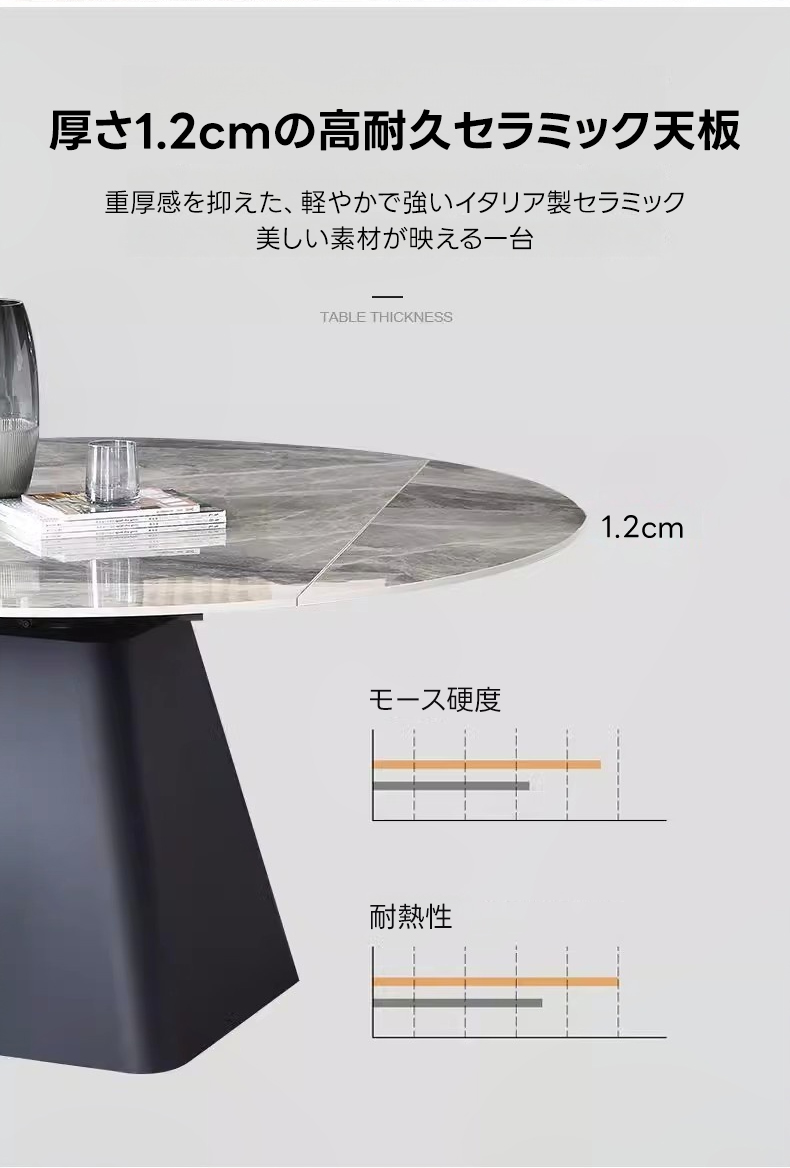 - 【安心の使用体験】:セラミック天板の高硬度と高耐荷重設計により、長期間安心してご使用いただけます。丸みのあるエッジ仕上げで、安全性を高め、お子様や高齢者のいる家庭でも安心です。