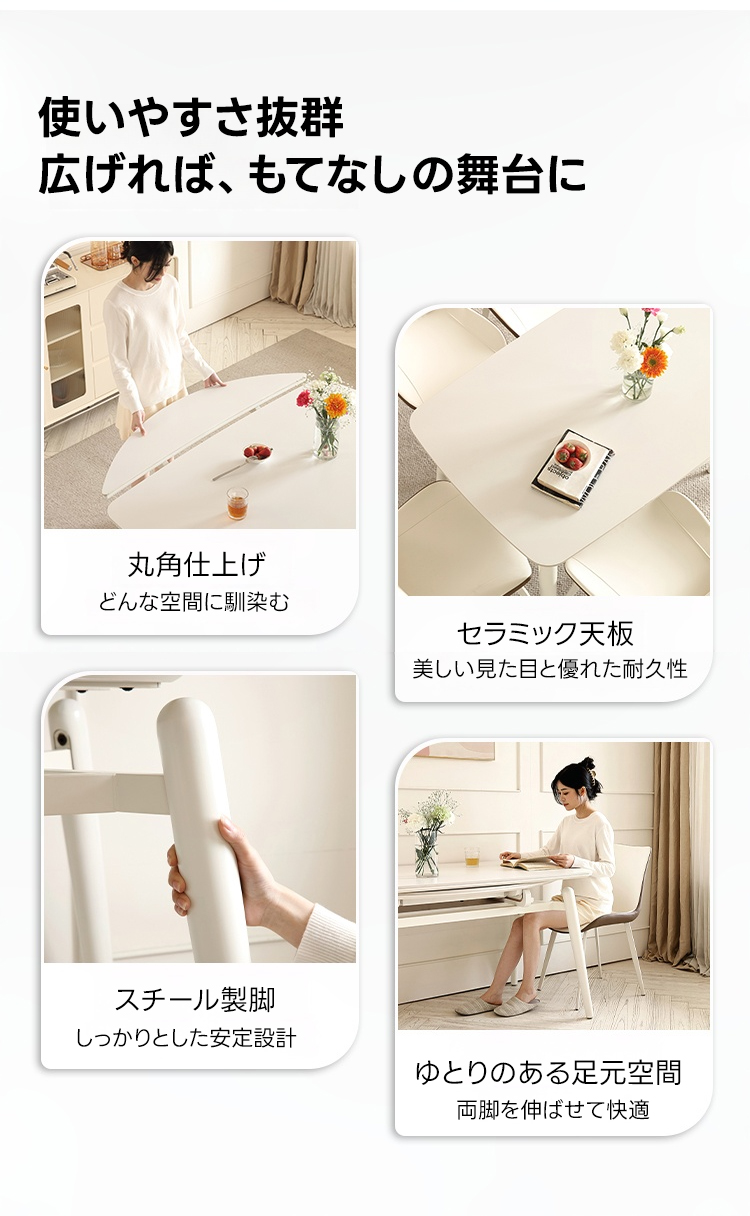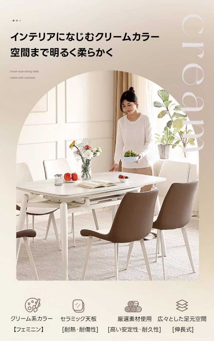 - 【多様なシーンで活躍】クリーム系のカラーがインテリアに溶け込み、空間を明るく柔らかく演出します。カップルやファミリーにぴったりで、日常のティータイムから特別なディナーまで、さまざまなシーンで活躍します。