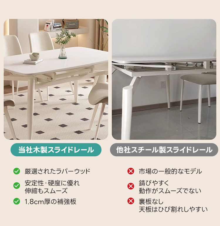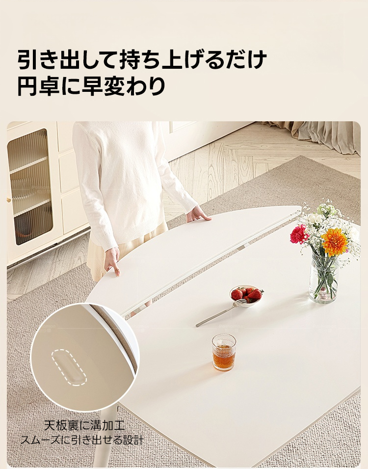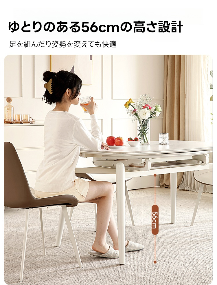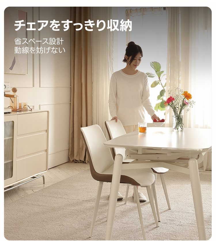 - 【多機能エクステンションテーブル】このダイニングテーブルは、エクステンション機能を備えたスライドデザインで、普段はコンパクトに使用し、必要に応じて最大8人まで対応可能なサイズに拡張できます。簡単にスライドして調整でき、家族や友人との集まりに最適です。