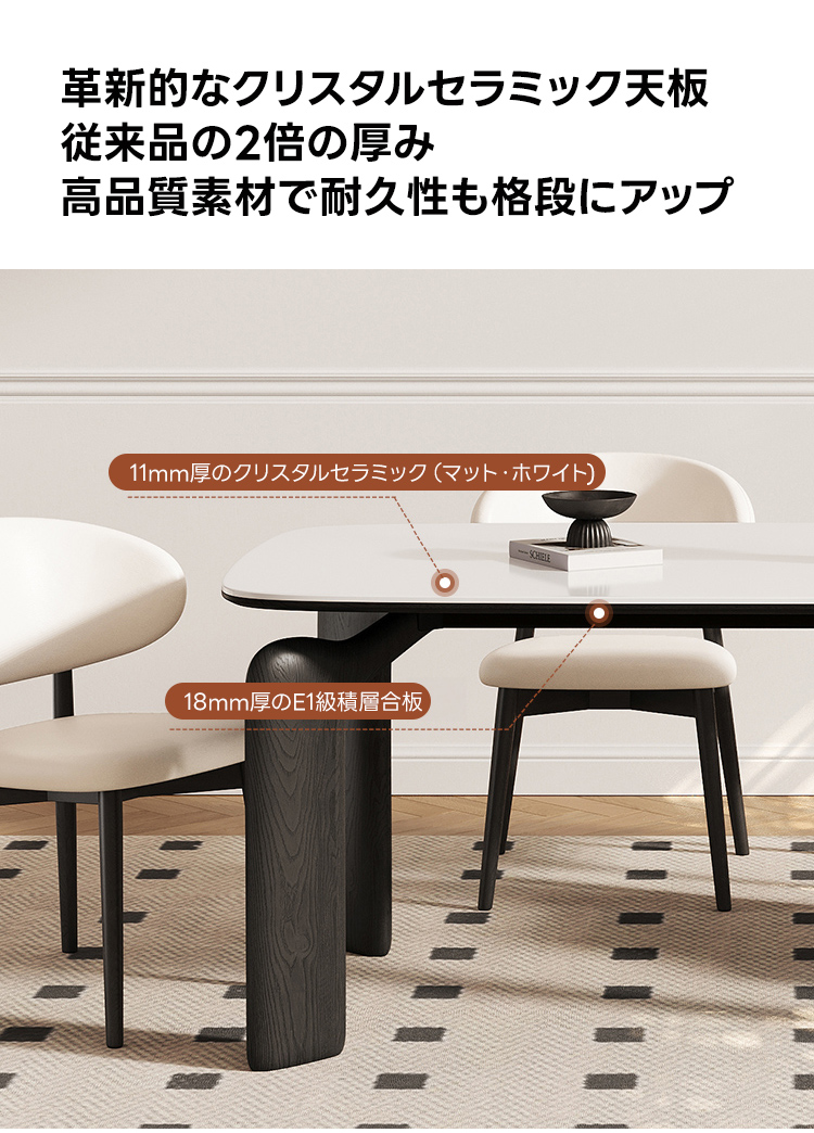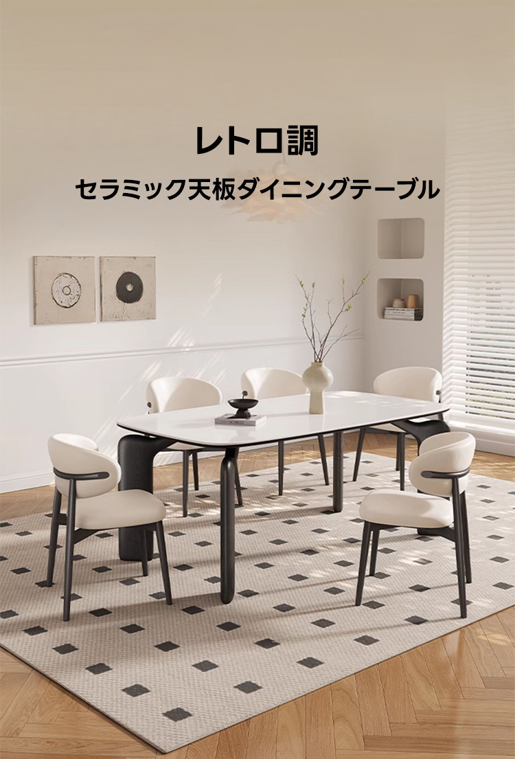 - 【レトロ調デザインと現代機能の融合】:このダイニングテーブルは、レトロな美しさと現代的な機能性を兼ね備えています。11mm厚のクリスタルセラミック天板は、耐傷性と耐熱性に優れ、食材が直接触れても安心です。家庭の中心として、日常の食事時間をより豊かに演出します。