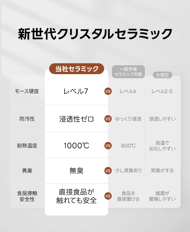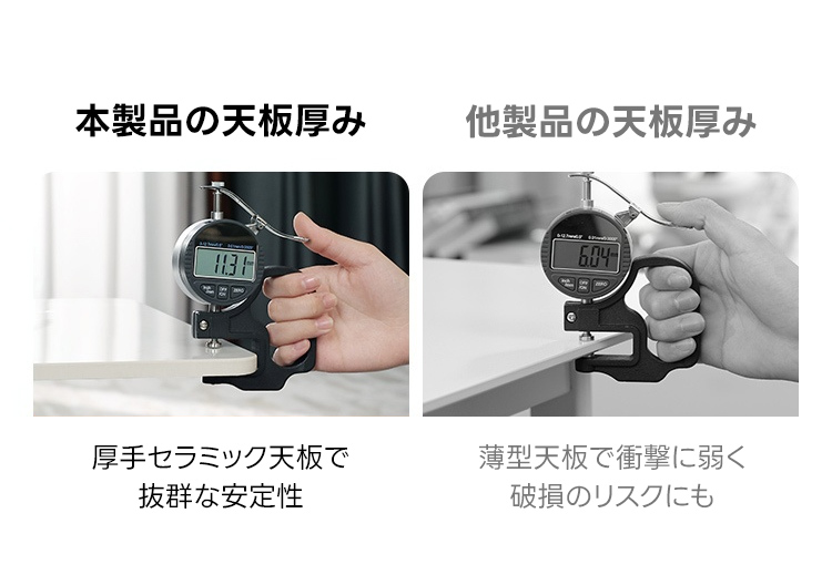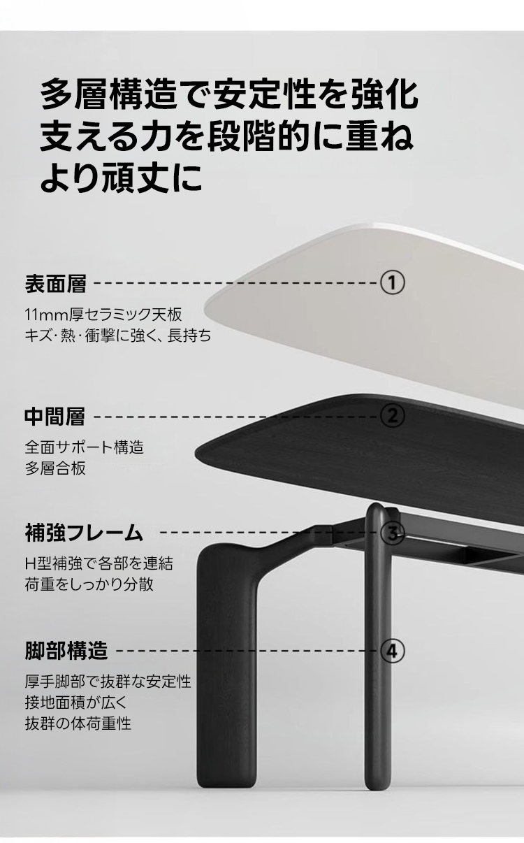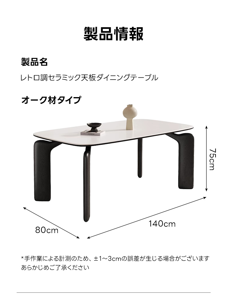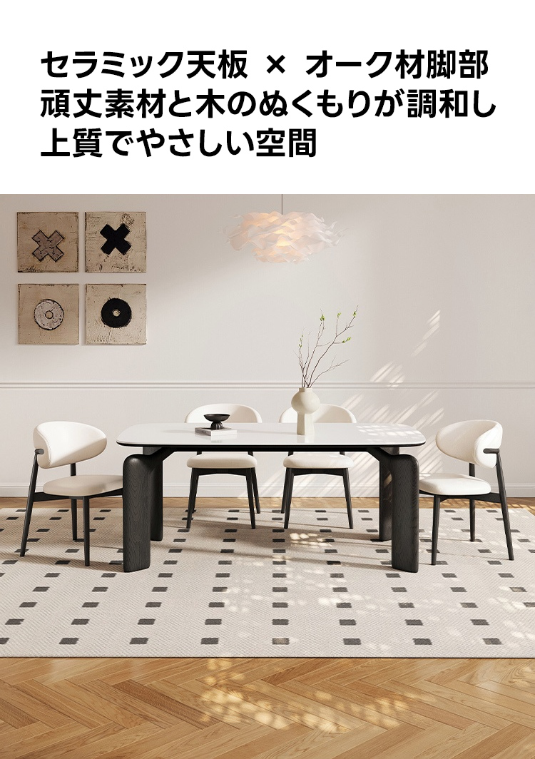 - 【安心の品質保証】:高品質な素材と設計により、長期間にわたって安心してご使用いただけます。耐久性に優れたセラミック天板と安定したオーク材の脚部が、日常の使用においても安心のサポートを提供します。