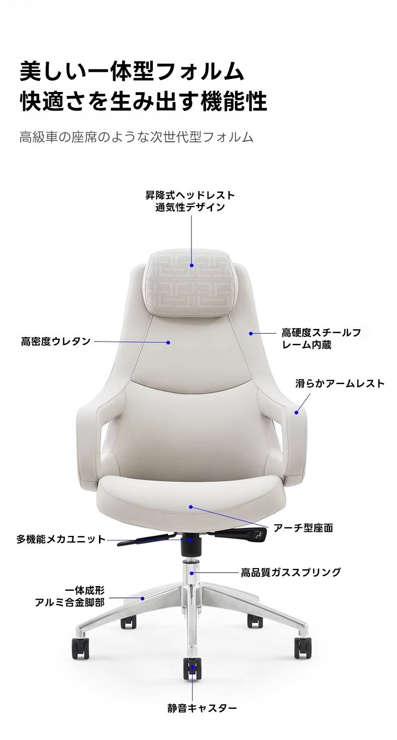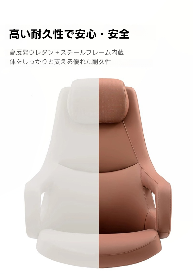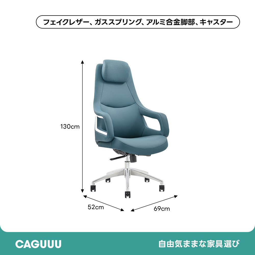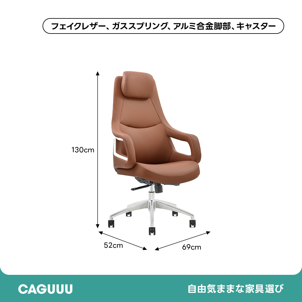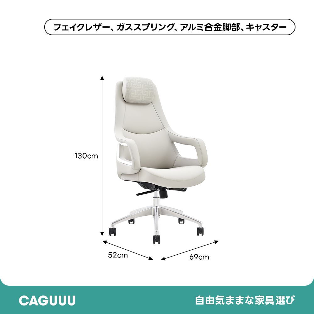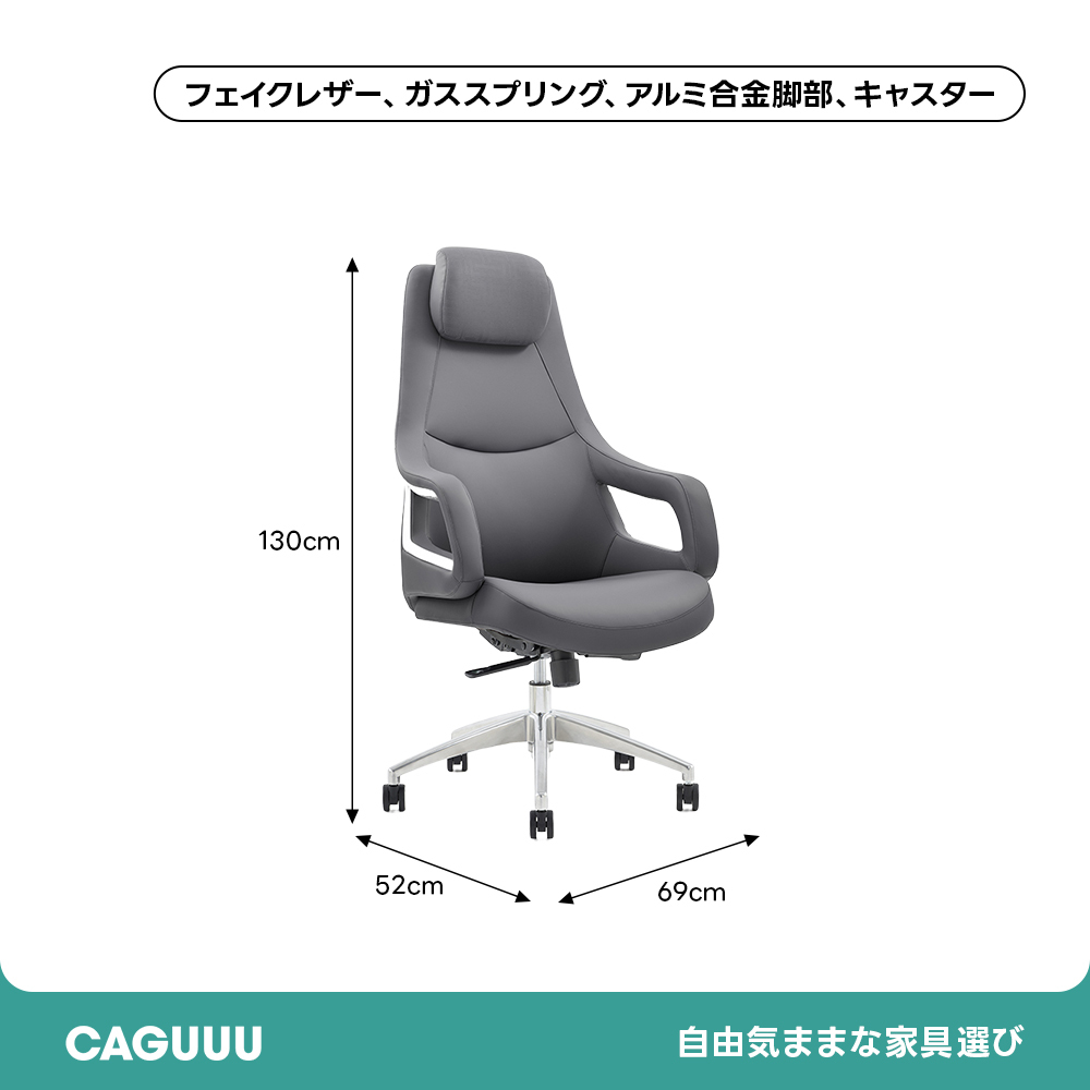 - 【高品質素材と耐久性】高品質のフェイクレザーを使用し、滑らかな触り心地と高級感を演出します。耐久性のあるガススプリングとアルミ合金脚部を備え、安心して長期間使用できます。
