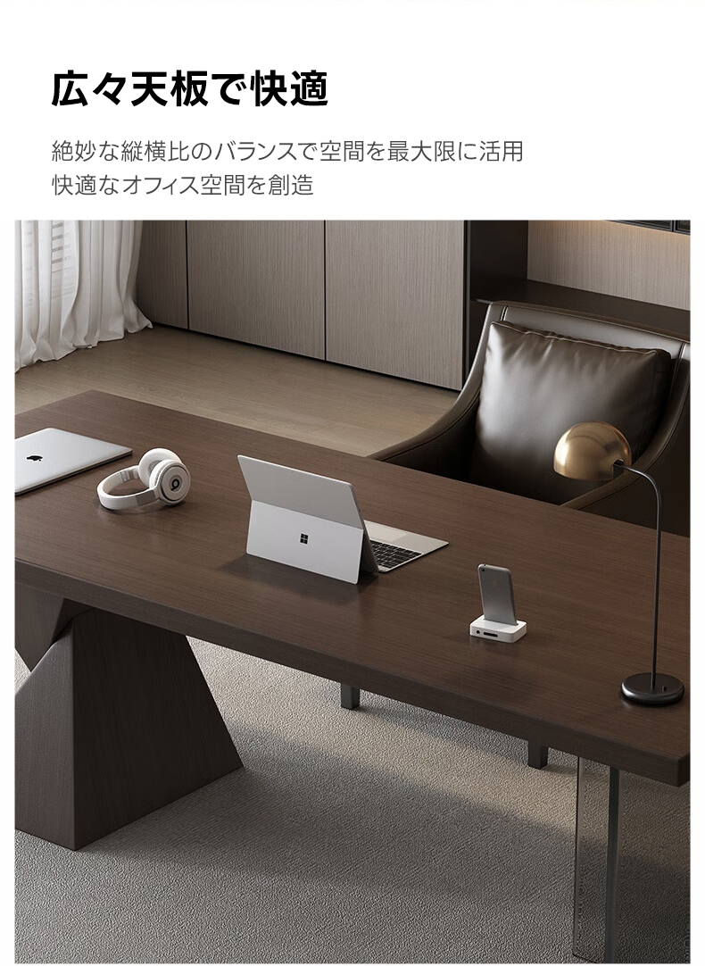- 【多様な適用シーン】このデスクは、カップルやファミリー、一人暮らしの方に最適で、書斎やホームオフィスにぴったりのアイテムです。広々とした天板は、ノートパソコンや書類を広げても余裕があり、効率的に作業を進めることができます。