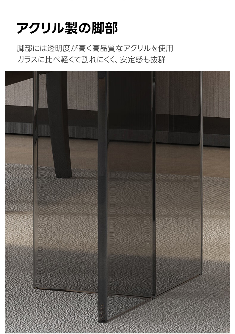 - 【安心のアフターサービス】アクリル脚はガラスに比べて軽く、割れにくいという利点があります。長期間安心してお使いいただける設計です。