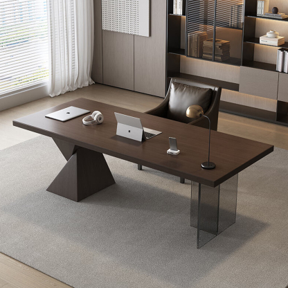- 【高品質な素材とユニークなデザイン】デスクの最大の特徴は、そのユニークな脚部デザインです。片側はジオメトリックな形状の木製脚で、もう片側は透明度の高いアクリル製の脚を採用しており、視覚的にも軽やかでありながら安定感があります。