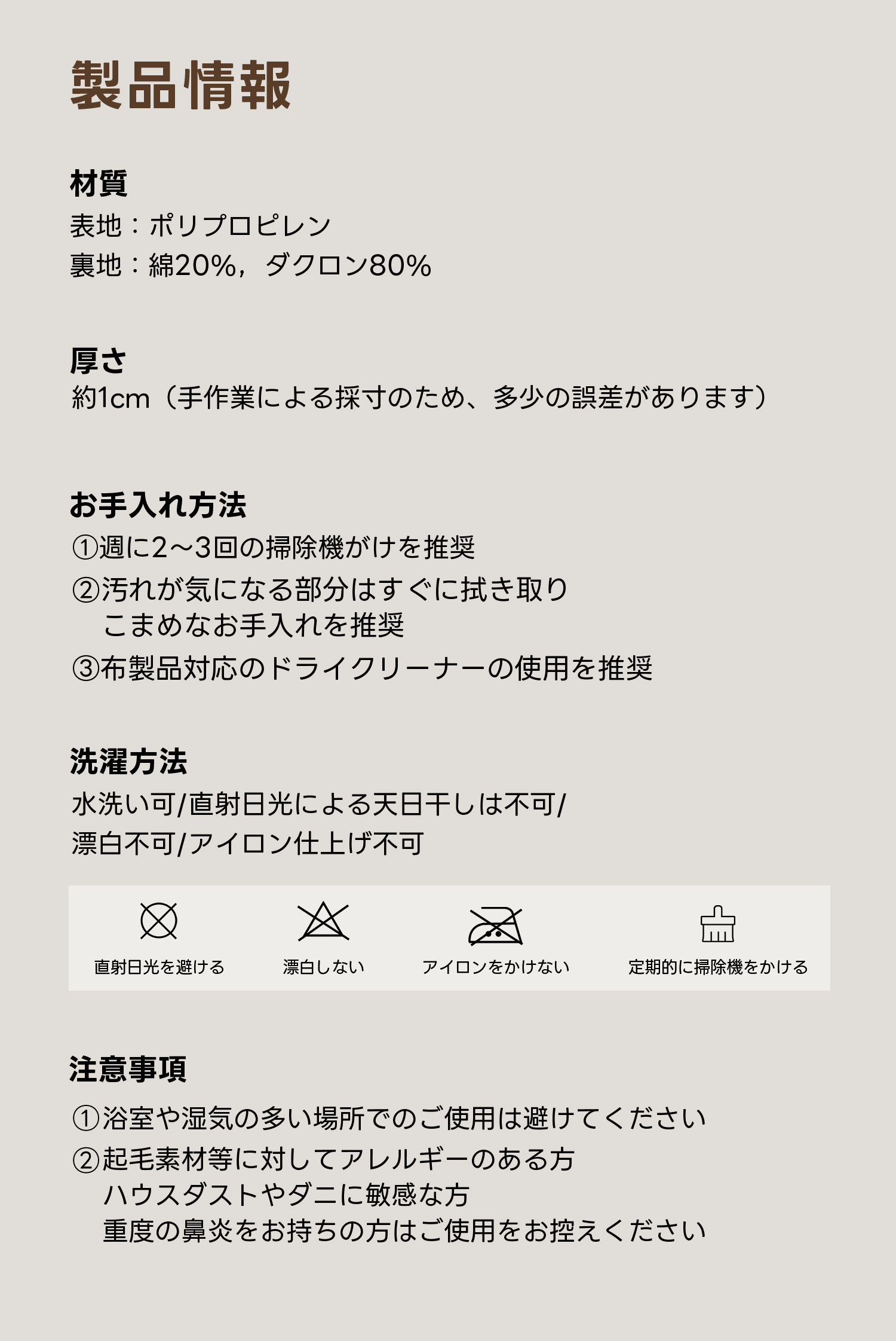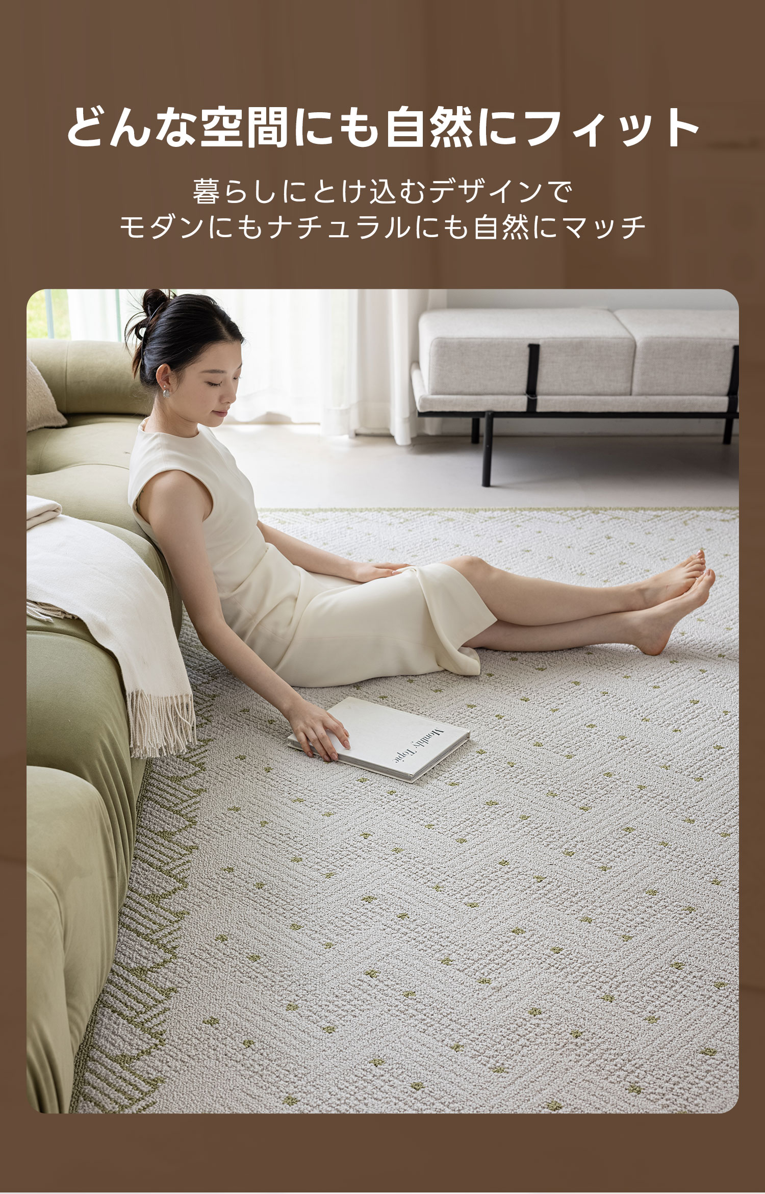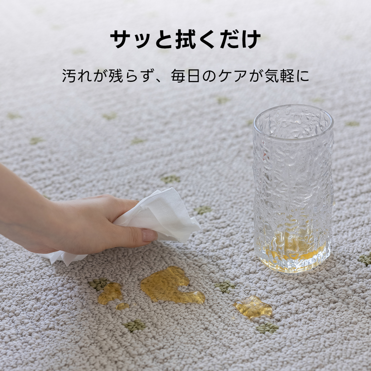 - 【撥水性と通気性の両立】:このラグは撥水性に優れたロータス効果を持ち、水分や汚れを簡単にはじきます。通気性も良く、オールシーズン快適に使用できます。日々のお手入れも簡単で、清潔を保つことができます。