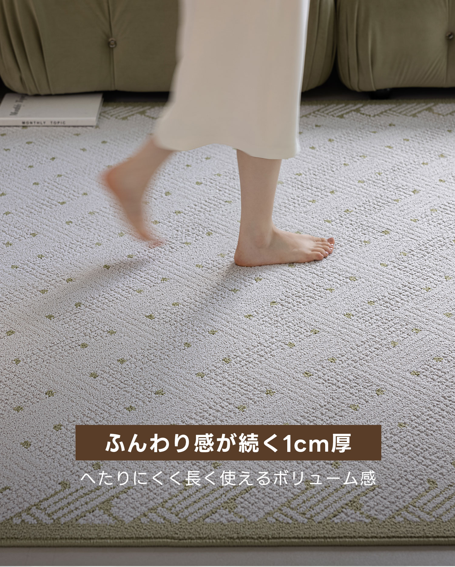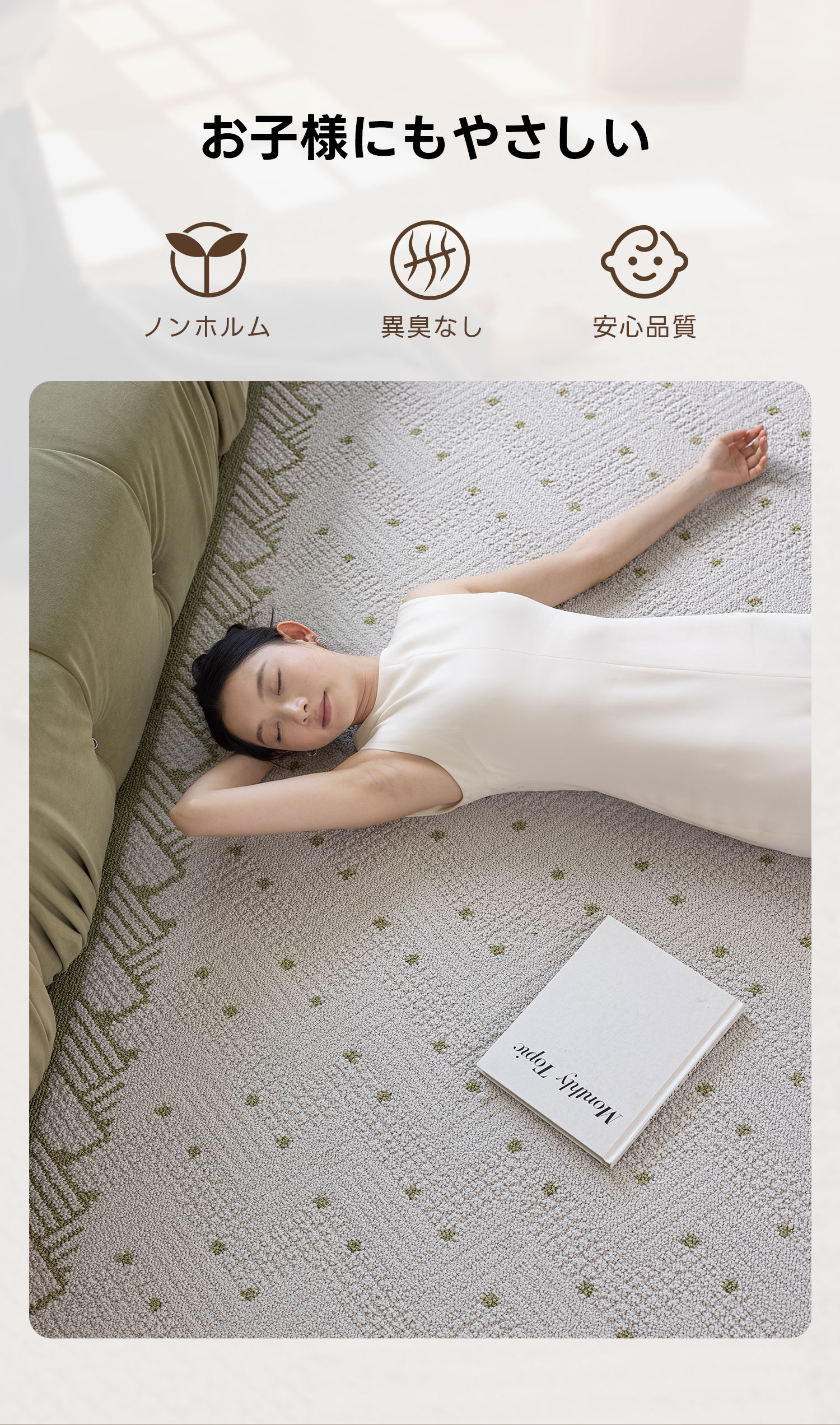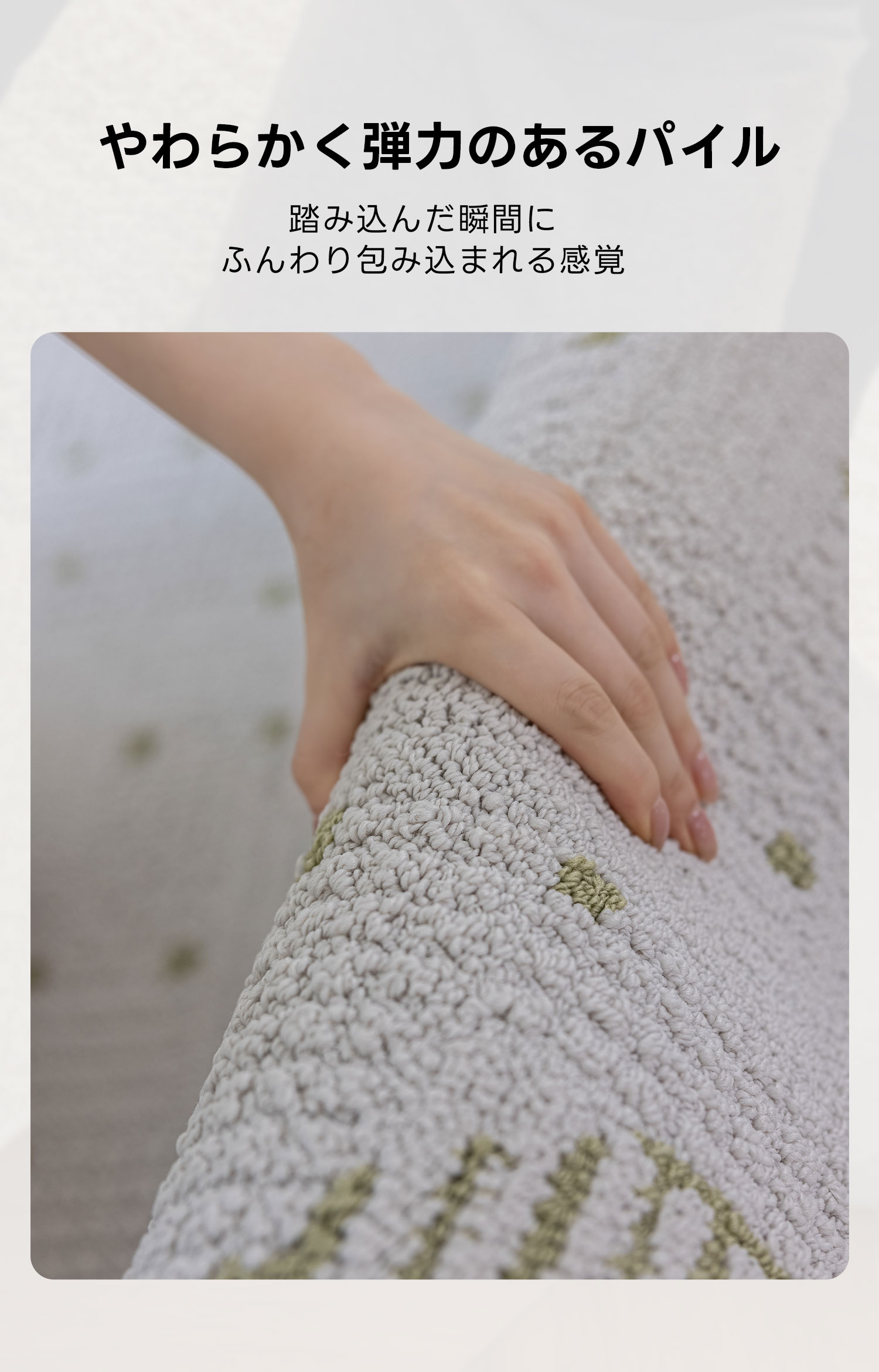 - 【快適な使用体験】:厚さ約1cmのふんわりとした弾力があり、足を踏み入れた瞬間に心地よく包まれる感覚を提供します。長く使用してもへたりにくい設計で、快適な空間を提供します。