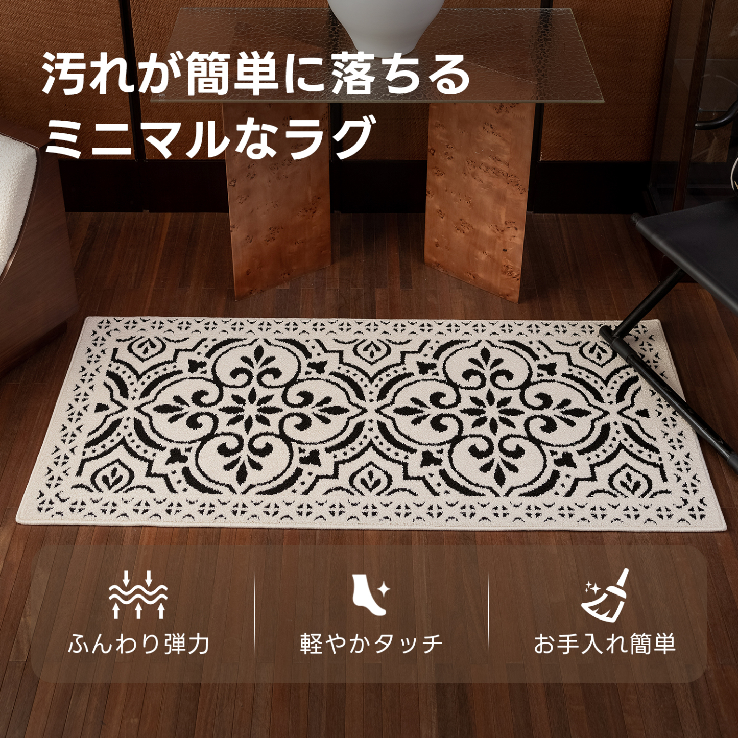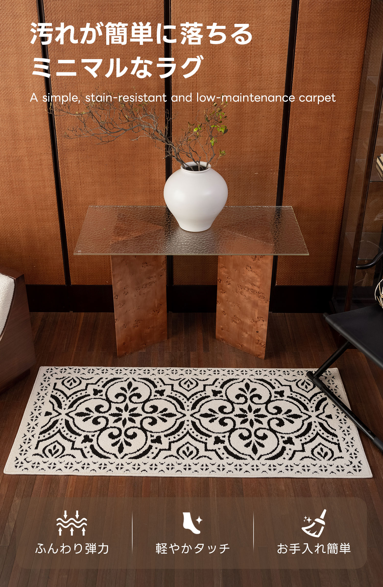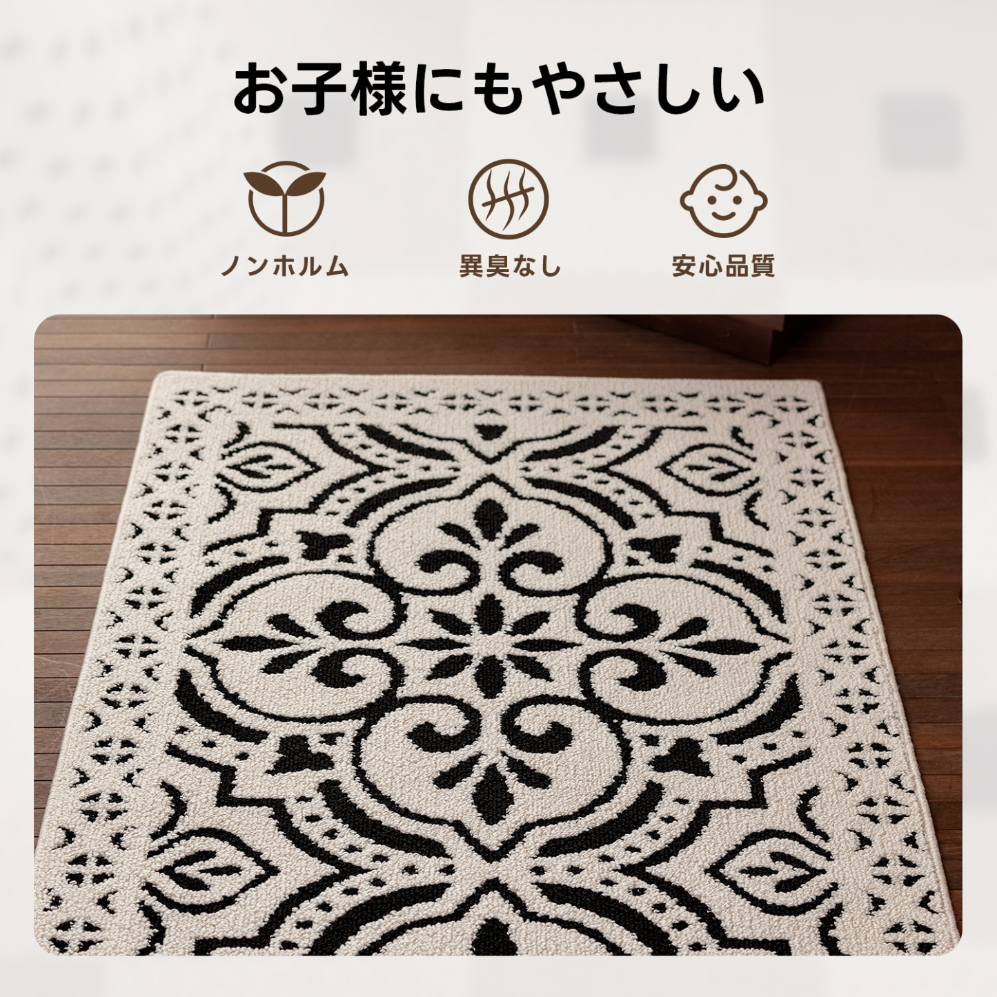 - 【高品質な素材とデザイン】:表地はポリプロピレン、裏地は綿とダクロンの混合素材で、柔らかく快適な踏み心地を提供します。クラシックなレース模様が上品さを演出し、空間を格上げします。