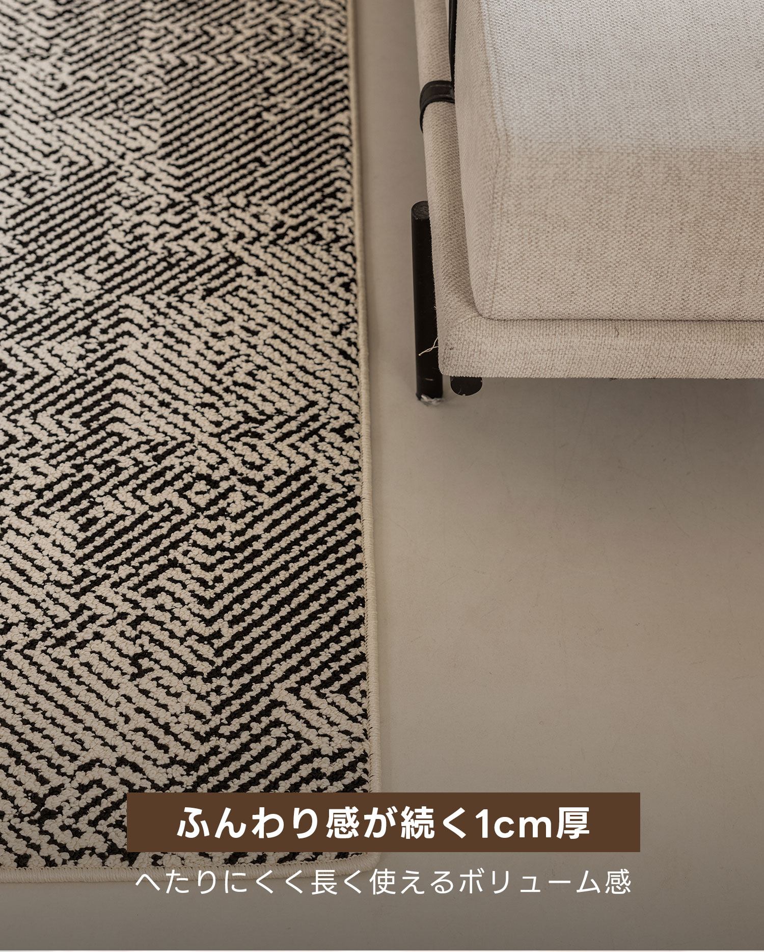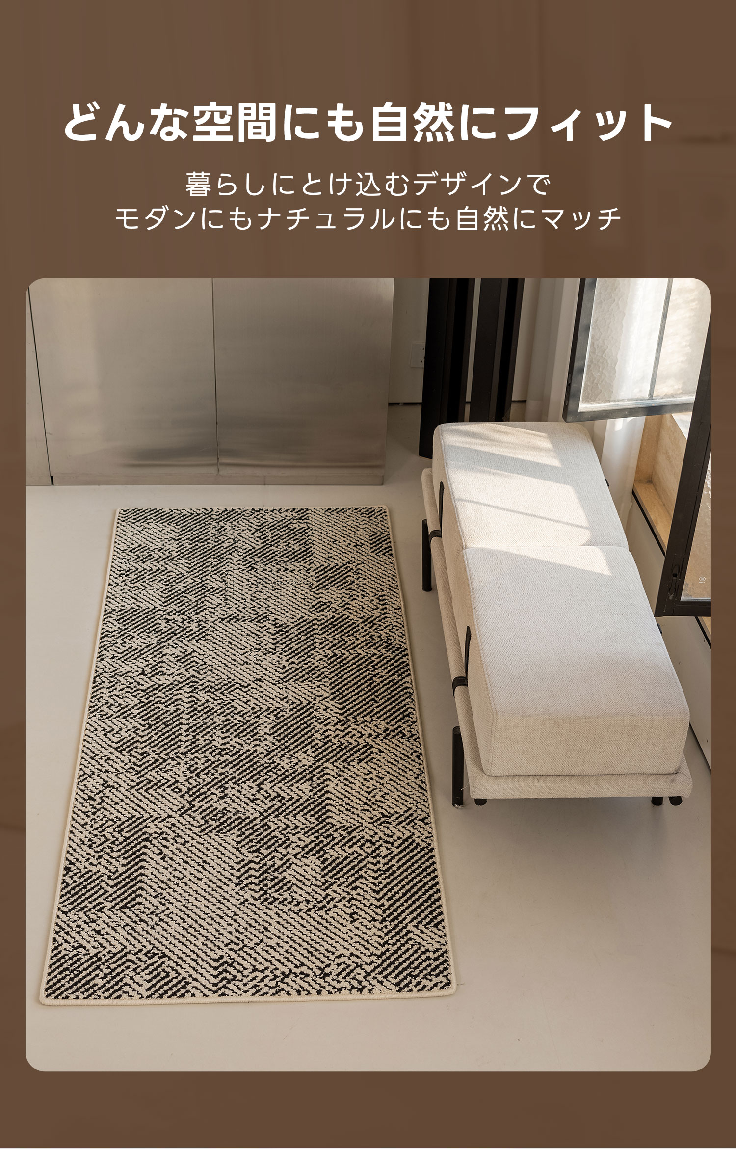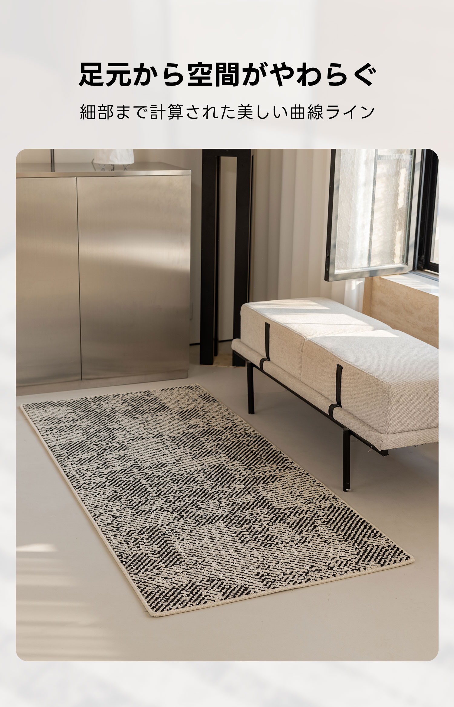 - 【シンプルモダンデザイン】ジオラインラグは、シンプルでモダンなデザインが特徴です。ブラックとホワイトの色合いがスタイリッシュで、どんなインテリアにも自然に溶け込みます。玄関やエントランス、ダイニング、寝室、リビング、書斎など、さまざまな空間にフィットします。