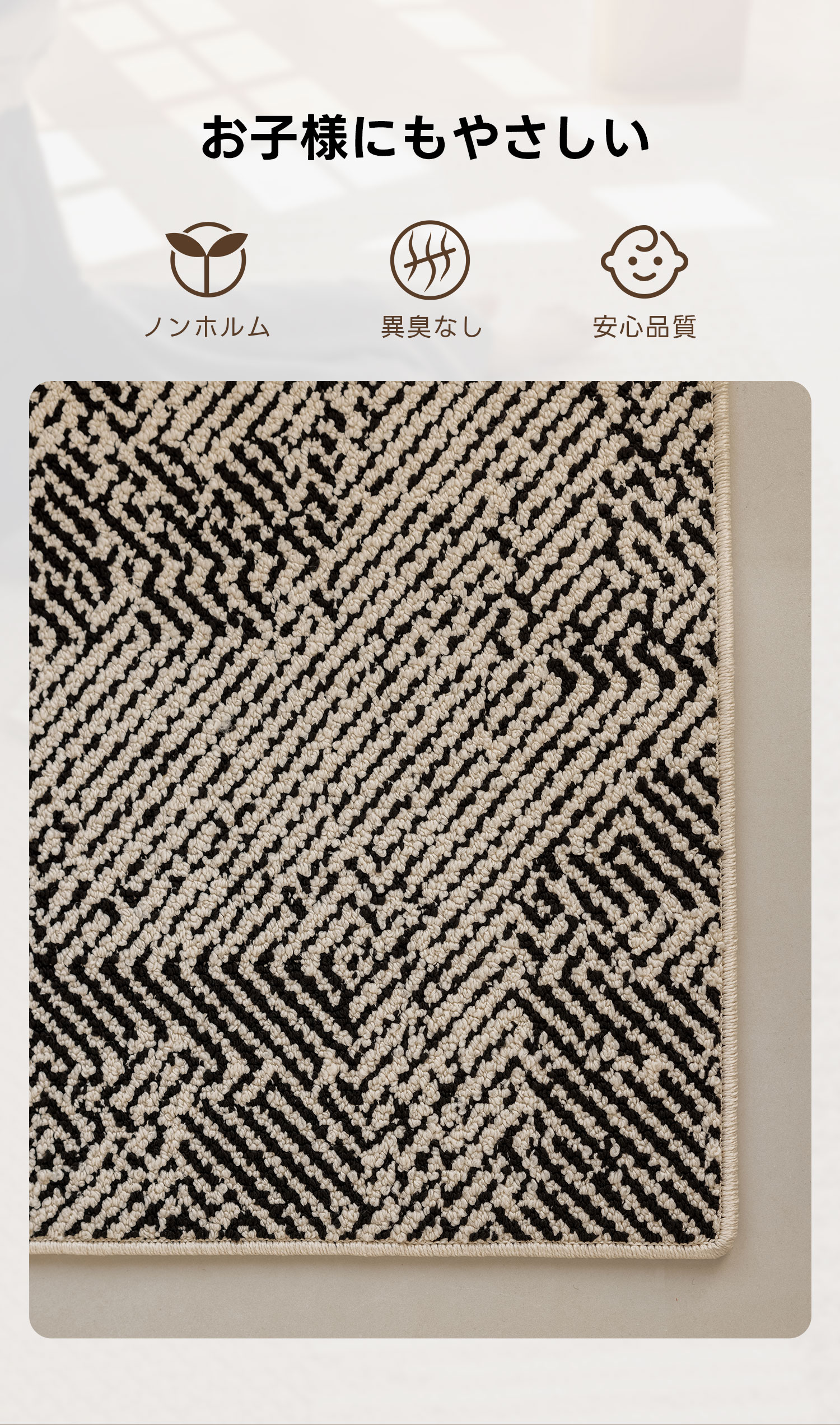 - 【快適な使用感】やわらかく弾力のあるパイルで、足元から空間をやわらげます。1cmの厚みがあり、ふんわりとした踏み心地を提供します。ノンホルムで異臭がなく、お子様にもやさしい安心品質です。
