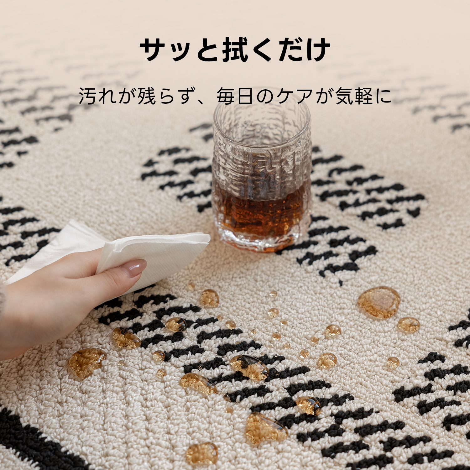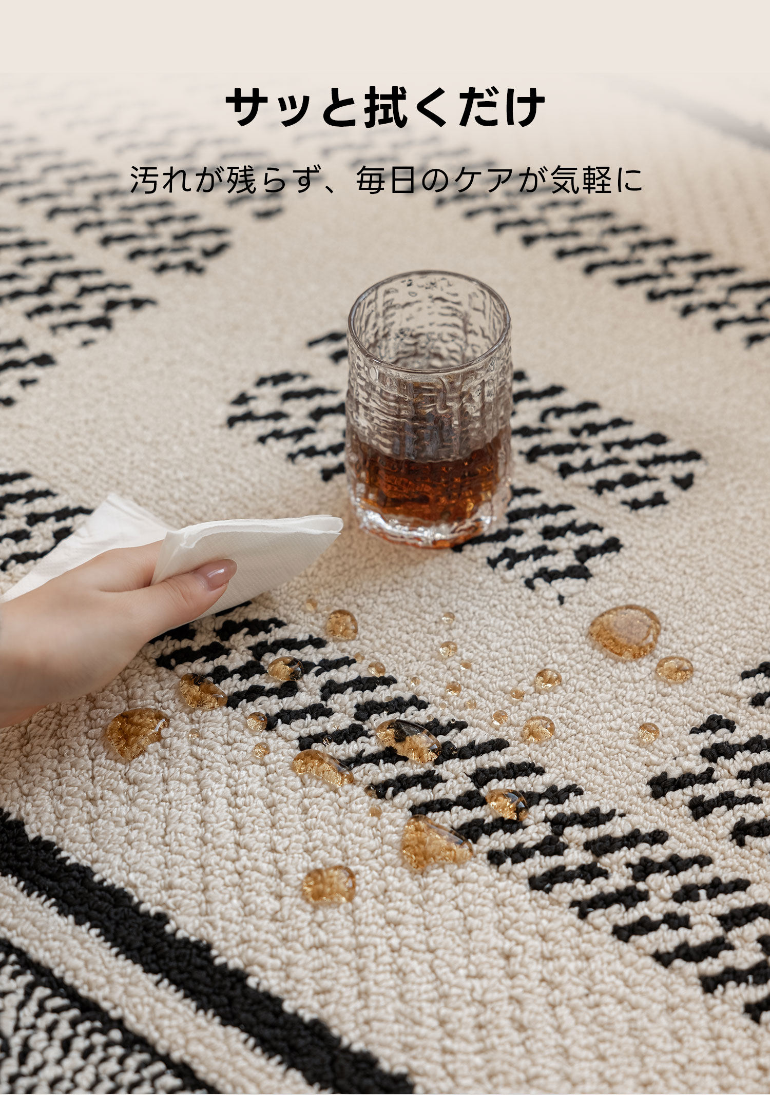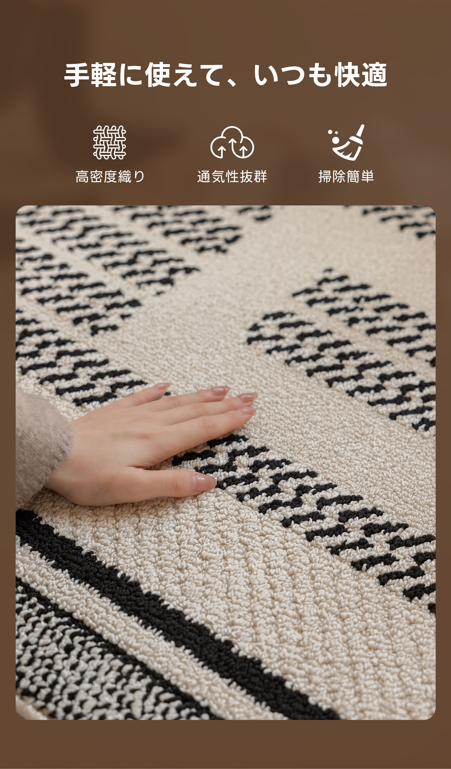 - 【優れた撥水性と耐久性】:ポリプロピレン素材を使用したブロックパターンラグは、撥水性と耐久性に優れています。日常の使用による水や汚れを簡単に防ぎ、長期間美しい状態を保ちます。