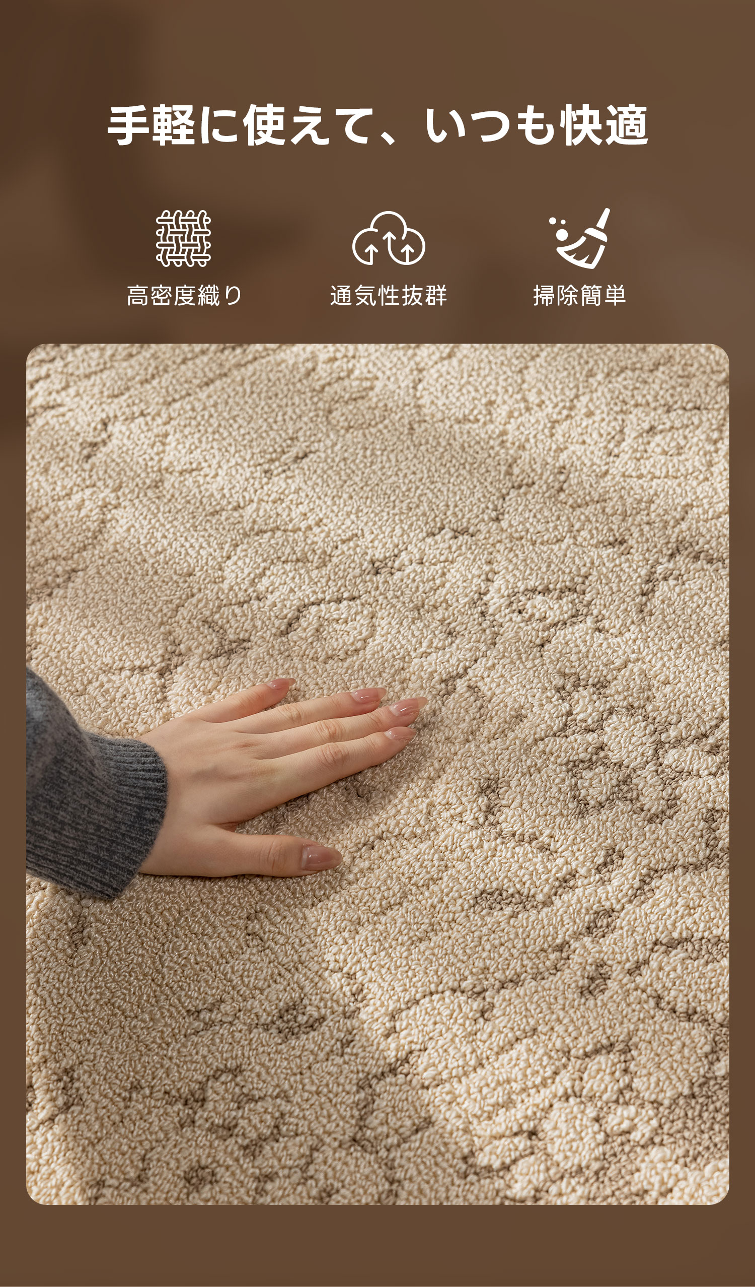 - 【多様な使用シーンに最適】このラグは、寝室、リビング、玄関、書斎など様々な空間にフィットします。シンプルモダンなデザインとナチュラルなライトブラウンの色合いが、どんなインテリアにも調和します。女性向けやカップル、ファミリー、一人暮らしの方々におすすめです。
