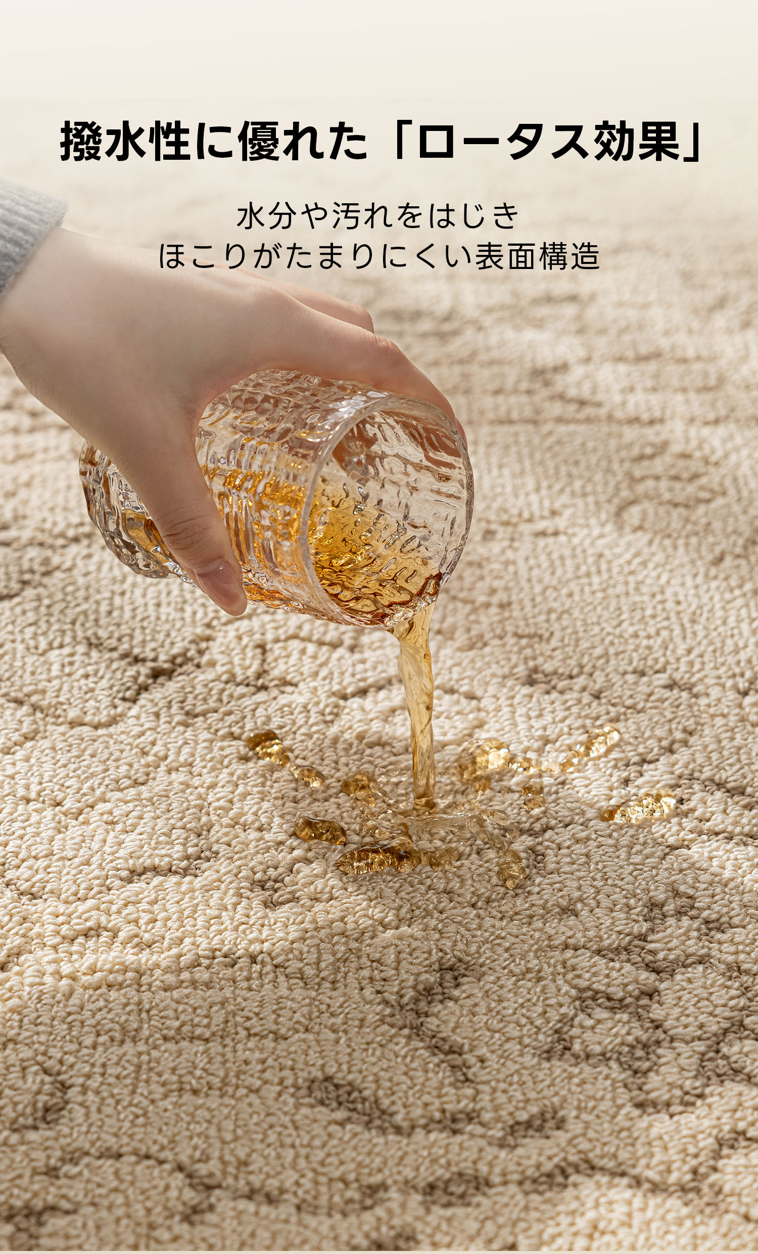 - 【高品質な撥水性ラグ】クラシックテクスチャーラグは、ポリプロピレン繊維を使用し、撥水性に優れたロータス効果を発揮します。水分や汚れをはじくため、日常の手入れが簡単です。汚れた部分はサッと拭くだけで清潔を保てます。