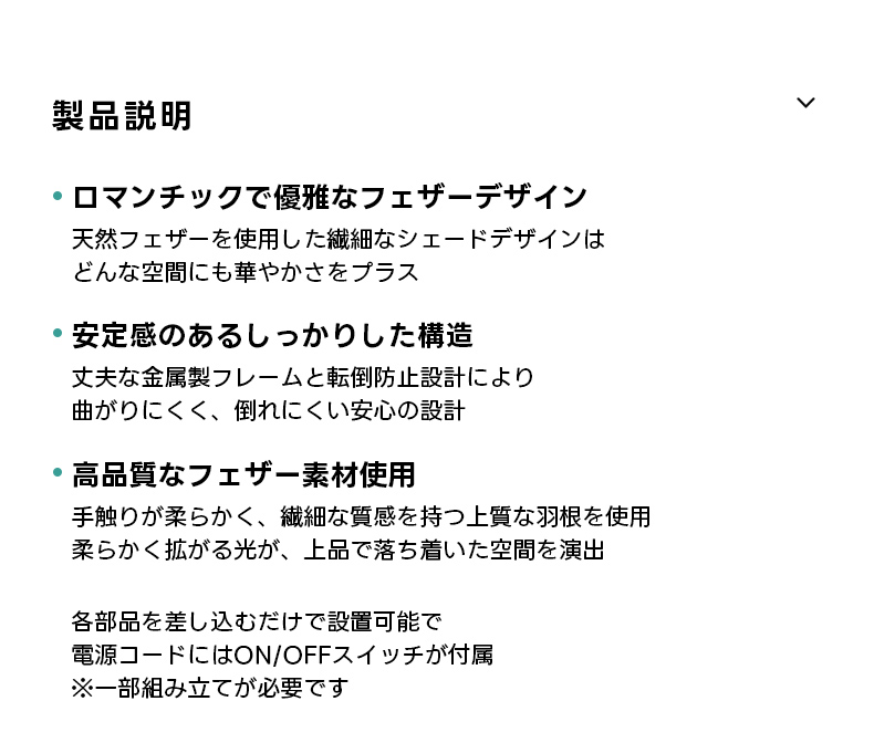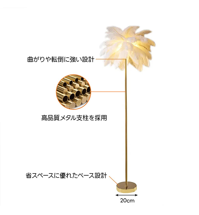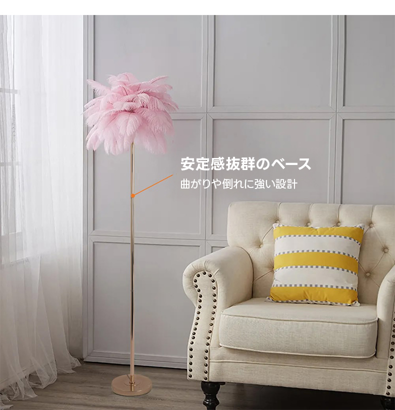 - 【優雅なデザインと機能性】このフロアライトは、天然フェザーを使用したシェードが特徴で、柔らかな光を放ちます。エレガントでロマンチックな雰囲気をお部屋にプラスし、上品で落ち着いた空間を演出します。