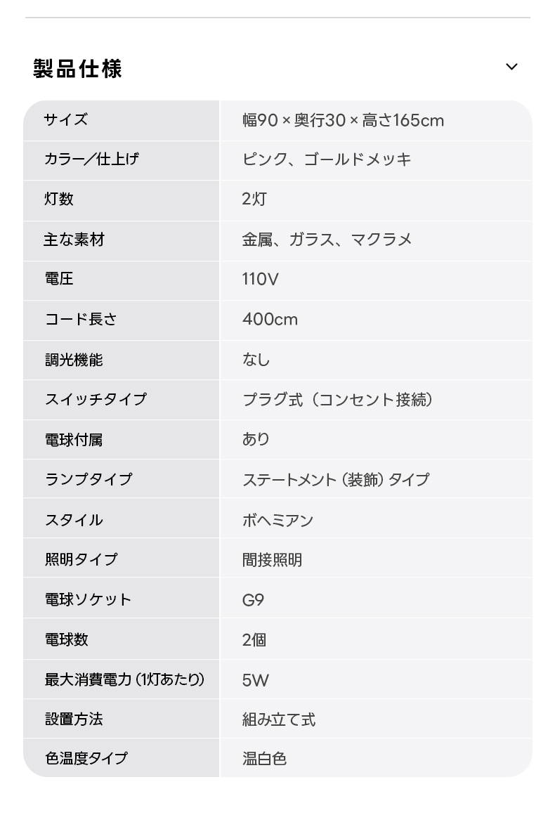 - 【高品質な素材と設計】金属、ガラス、マクラメを使用し、高級感と耐久性を兼ね備えています。幅90cm、奥行30cm、高さ165cmと大きめのサイズで、存在感があります。