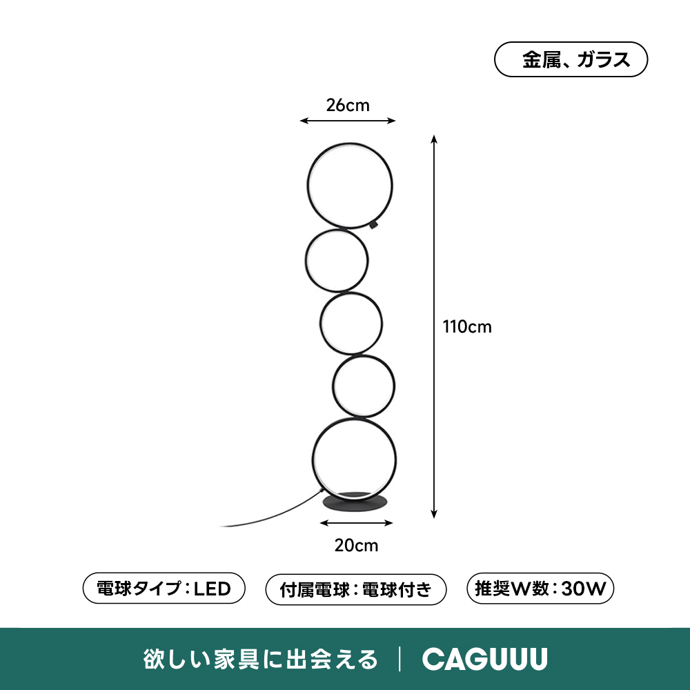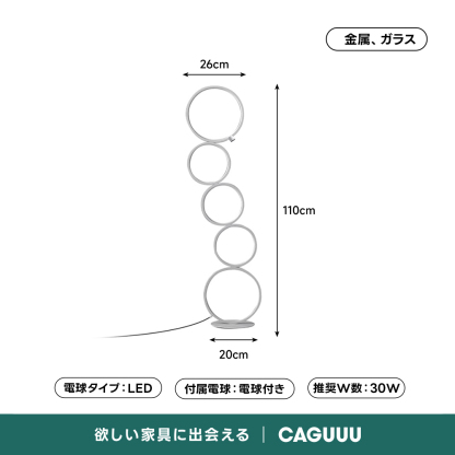 - 【シンプルモダンなデザイン】:ムーンサークルフロアライトは、5つの円形が連なるユニークなデザインで、空間にモダンなアクセントを加えます。リビング、寝室、書斎など様々な空間に調和し、スタイリッシュな雰囲気を演出します。