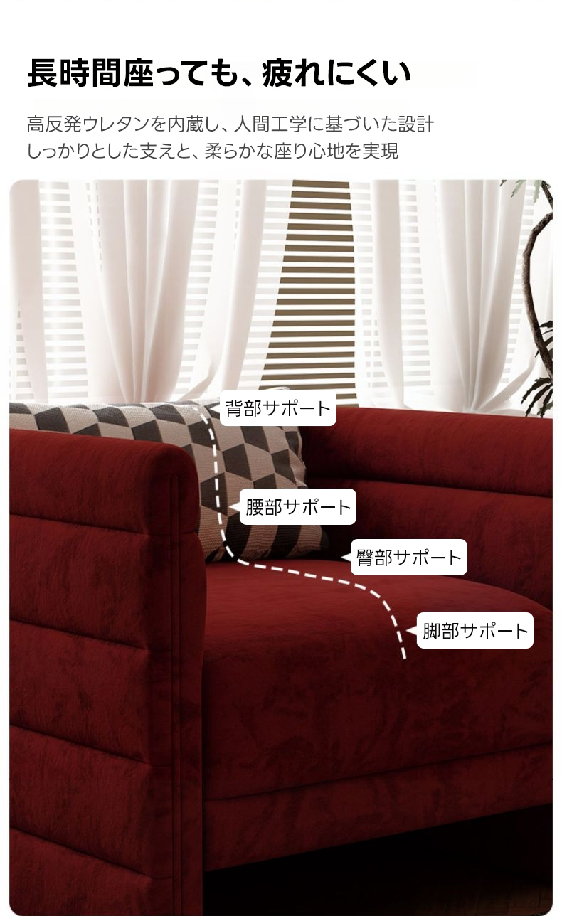 - 【高品質な素材と頑丈な構造】:高品質なベルベット生地を使用し、色褪せや毛玉ができにくく、5000回の耐摩耗性テストをクリアしています。頑丈な天然木製フレームとマンガン鋼Sバネがしっかりとした弾力性を提供します。