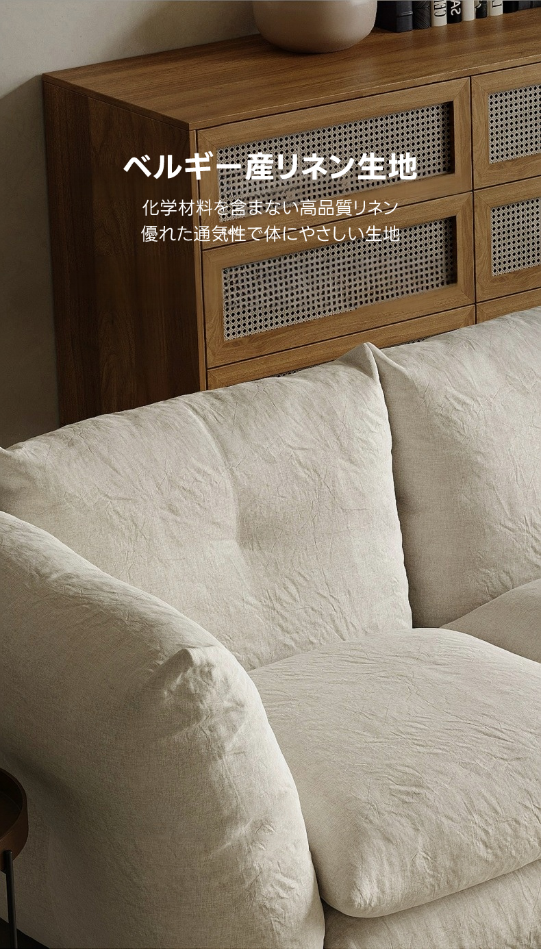 - 【高品質な素材と優れたデザイン】:ベルギー産リネン生地は化学材料を含まず、優れた通気性で体に優しい素材です。ドイツ式縫製ラインとロシア産カラマツ材フレームにより、耐久性と安定性を実現しています。