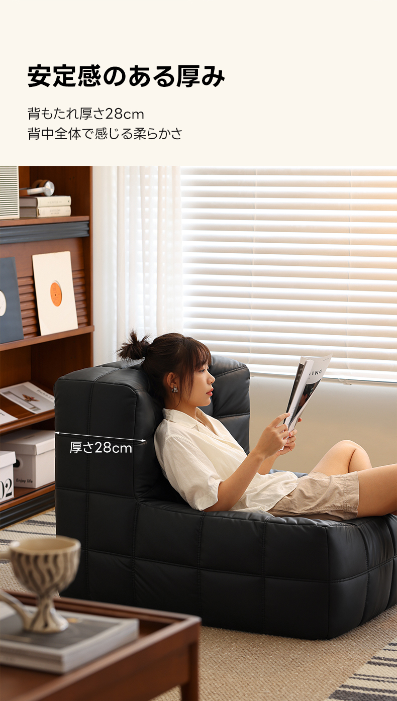 - 【使いやすさと快適性】:座面の高さは32cm、幅は80cmと広々とした設計で、背もたれの厚さは28cmで安定感があります。緩やかなカーブが首を支え、背中にフィットするデザインです。