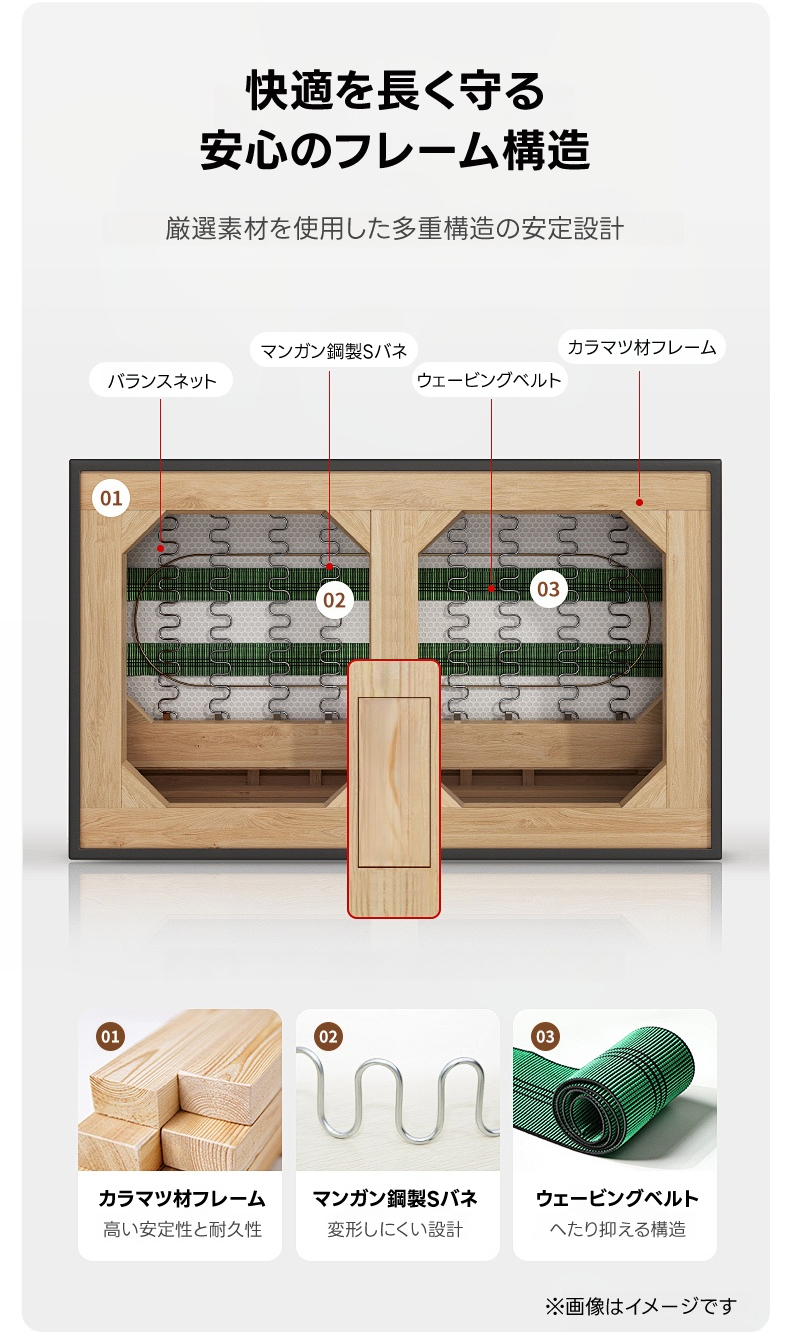 - 【上質な素材と耐久性】上質なトップグレインレザーを使用し、耐引裂性と耐摩耗性に優れた素材で、長期間使用しても美しさを保ちます。フレームにはカラマツ材と積層合板を使用し、安定感と耐久性を兼ね備えています。