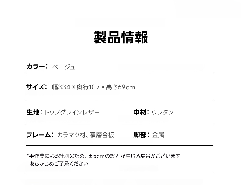 - 【簡単な組立と多用途】組立品でありながら、簡単に組み立てられる設計です。幅334cm、奥行107cm、高さ69cmの大型サイズで、ゆったりとした座り心地を実現します。
