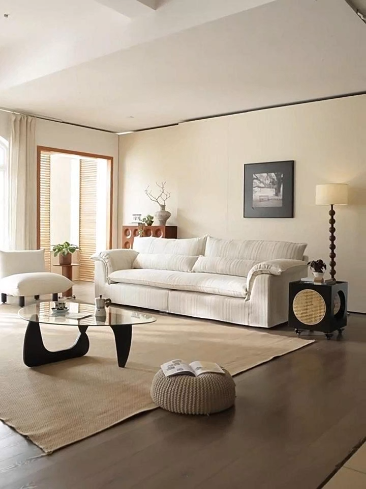 - 【極上の座り心地とデザイン性】:カームストライプソファは、イタリアンモダンスタイルとジャパンディデザインを融合し、リビングに洗練された雰囲気をもたらします。高密度ポリエステル生地とグースダウンの3層構造が、極上の座り心地を提供し、どんな姿勢でも快適に過ごせます。