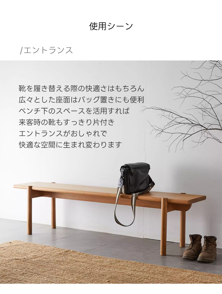 - 【多用途のクラシック木製ロングベンチ】:このベンチは、ダイニングやエントランスなど様々なシーンで活躍します。靴の履き替えやバッグ置きとしても便利で、カップルやファミリー、一人暮らしの方にも最適です。