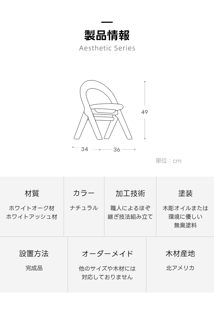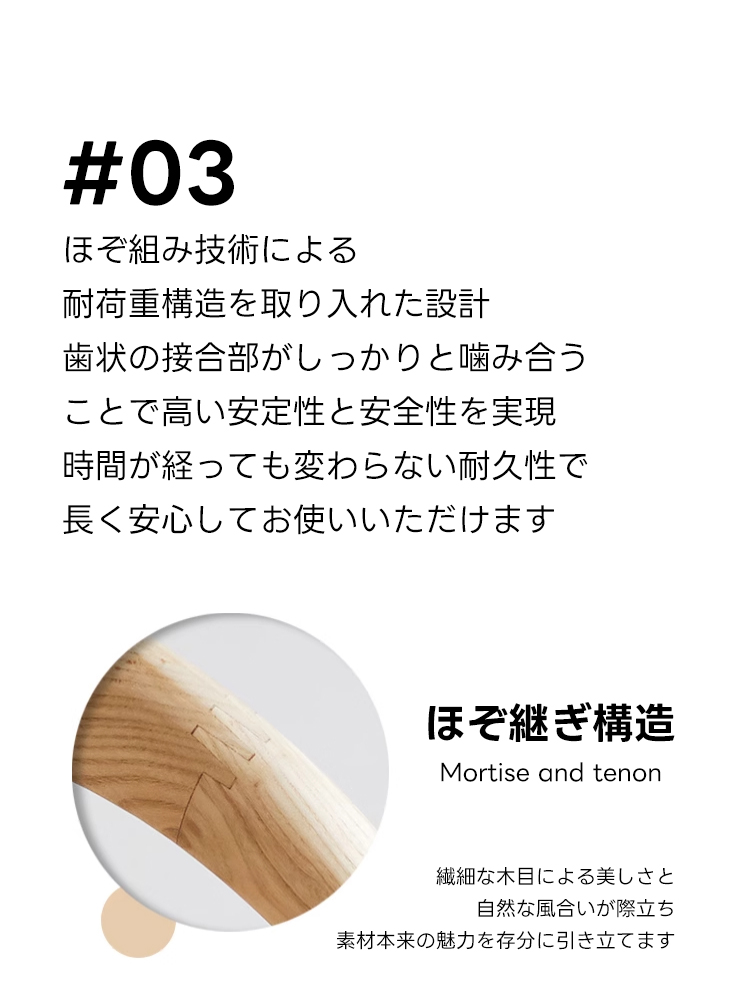 - 【高品質な素材と加工】:ホワイトオーク材とホワイトアッシュ材を使用し、職人によるほぞ組み技法で組み立てられています。耐荷重構造を採用し、環境に優しい無臭塗料で安全性と快適さを兼ね備えています。